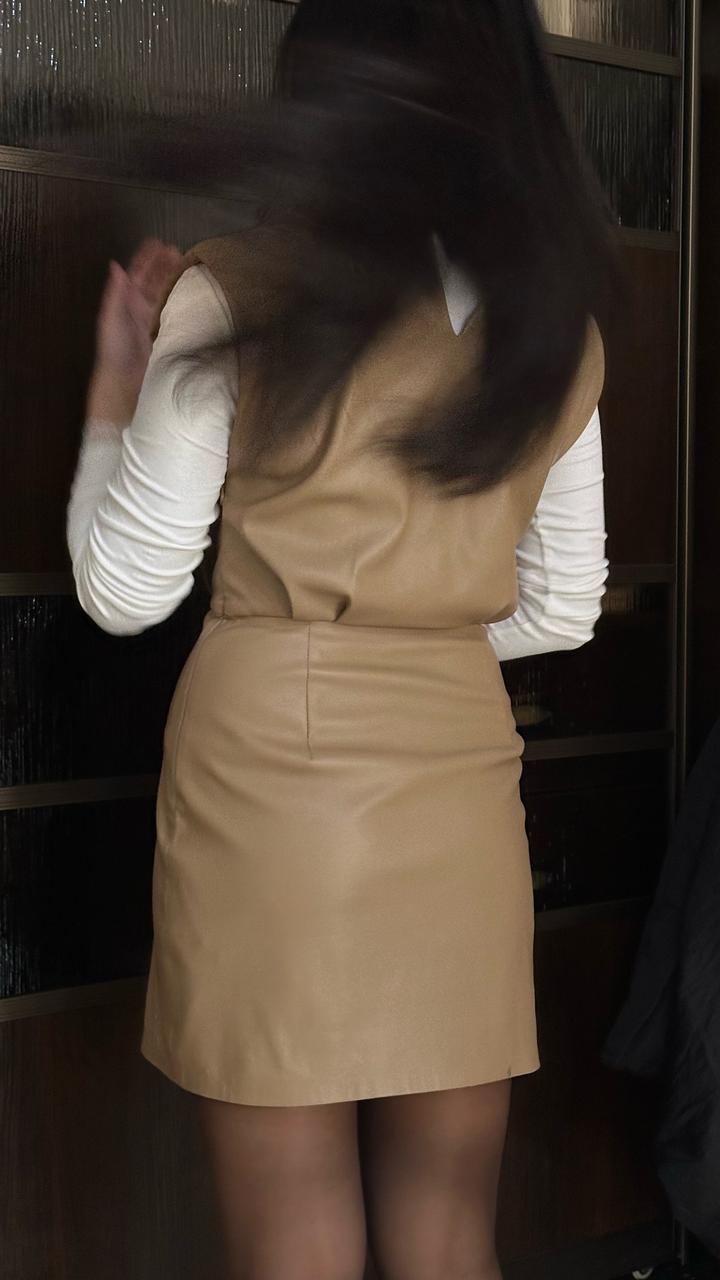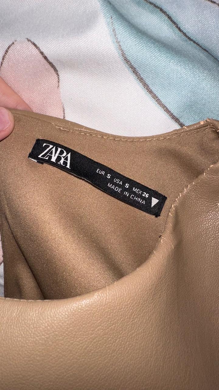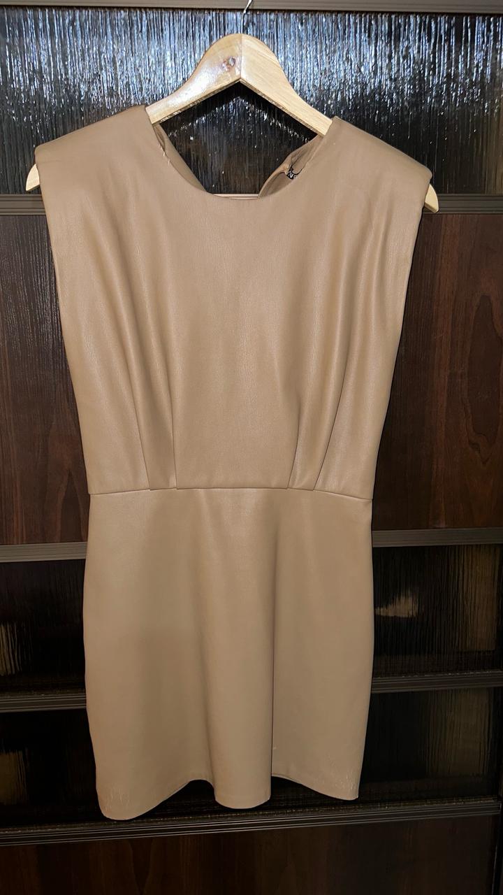 Бежевое кожаное платье Zara Размер S Есть только протертости вокруг шеи и снизу, которые видны при растягивании Артикул: 521082