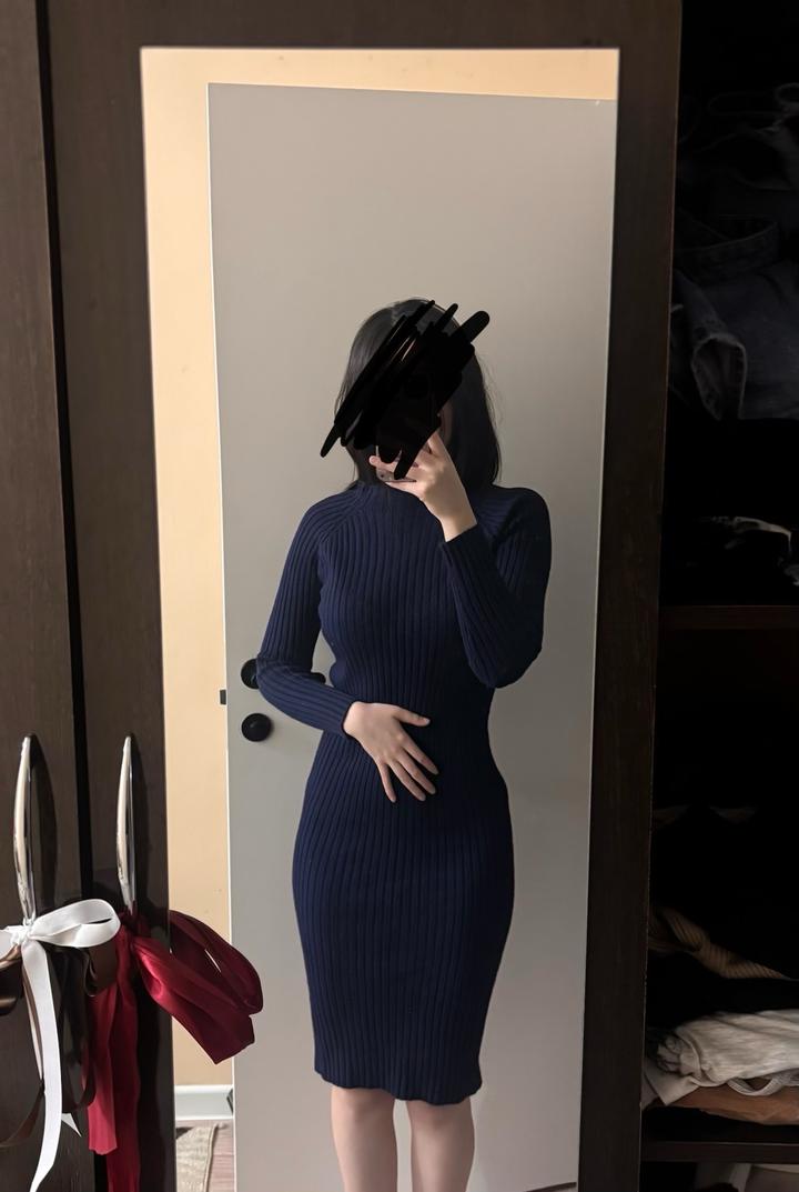 синее трикотажное платьеS