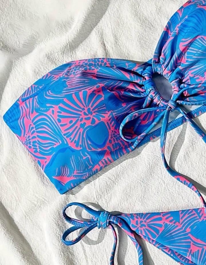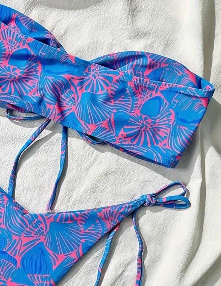 Раздельный купальник, яркий принт. На завязках. Артикул: 521381