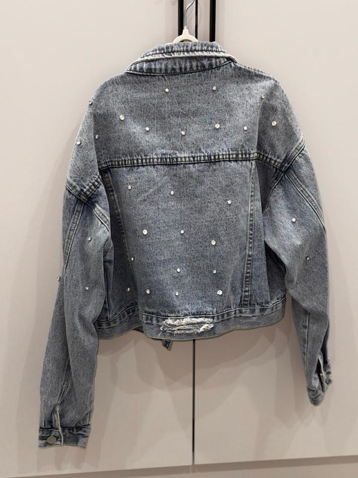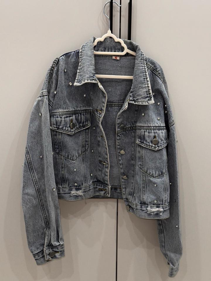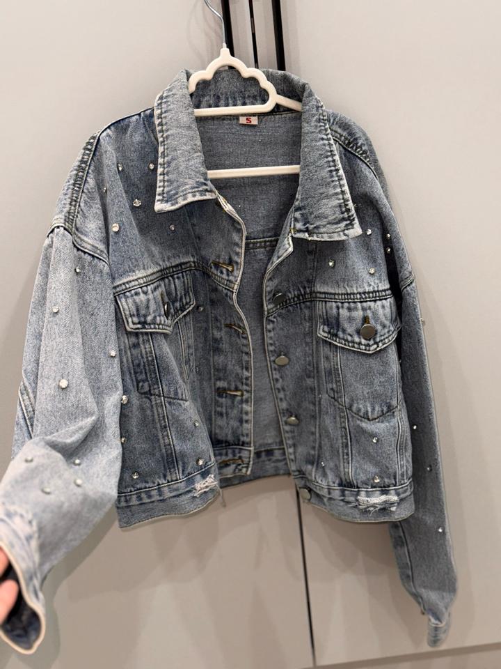 Продам стильную укороченную джинсовку со стразами. Размер: S (подойдёт и на M) Артикул: 521477