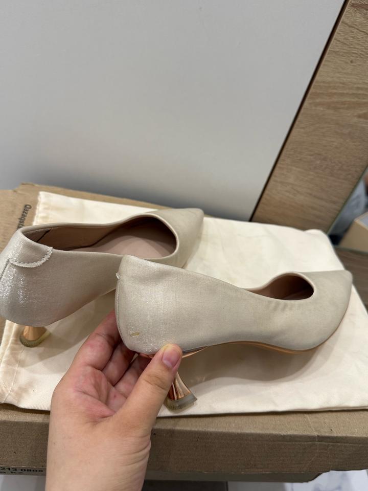 Туфли в отличном состоянии, носила раза 2 на той, они мне маловато стали после беременности, очень удобные, каблук маленький 5 см, есть небольшой дефект, видно на фото, качество топ👍🏻 Артикул: 521494