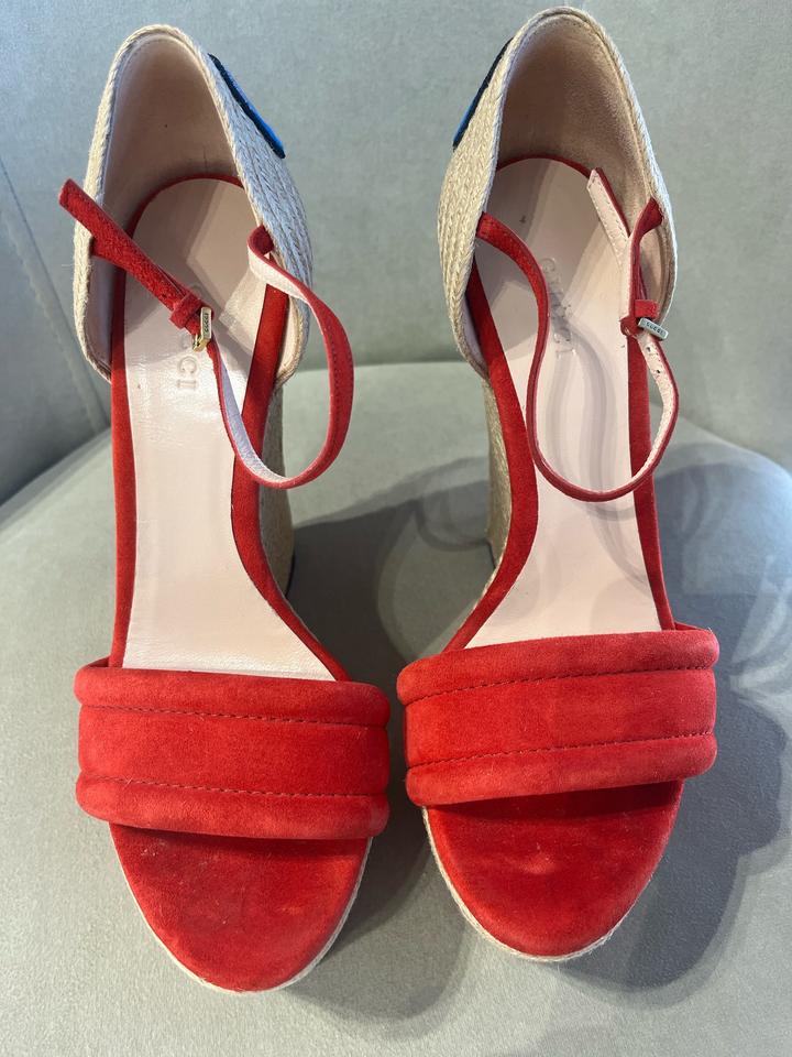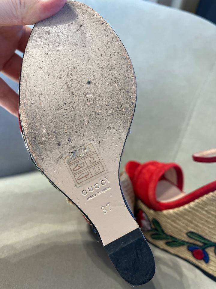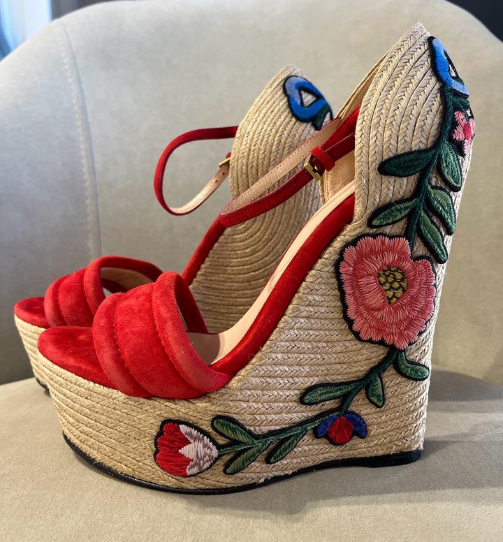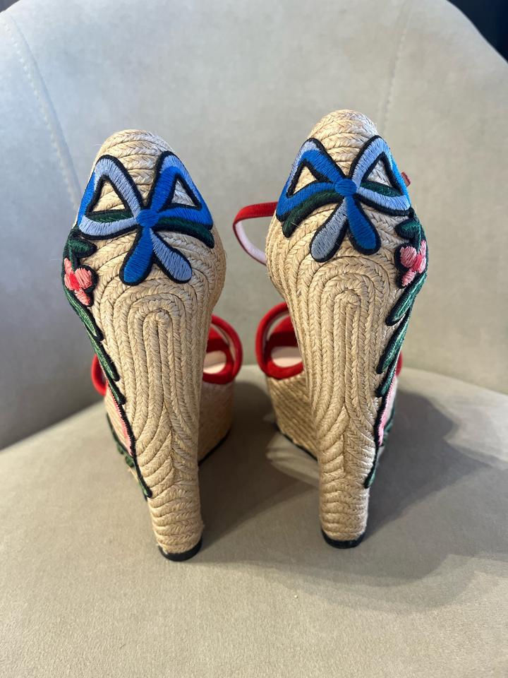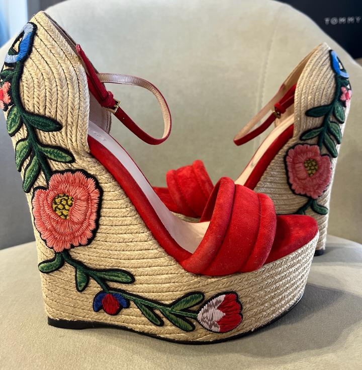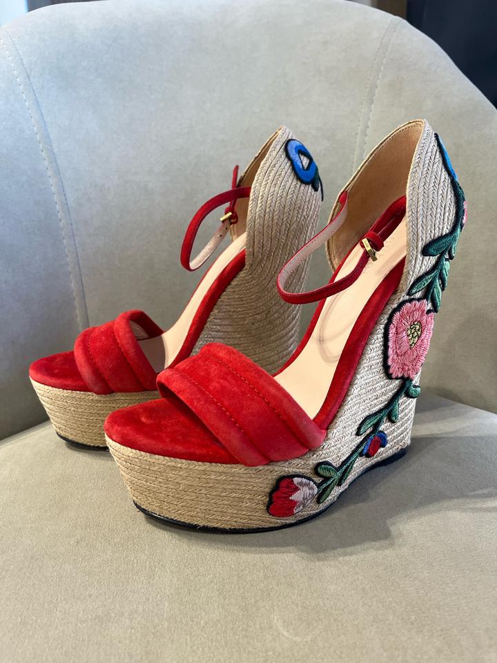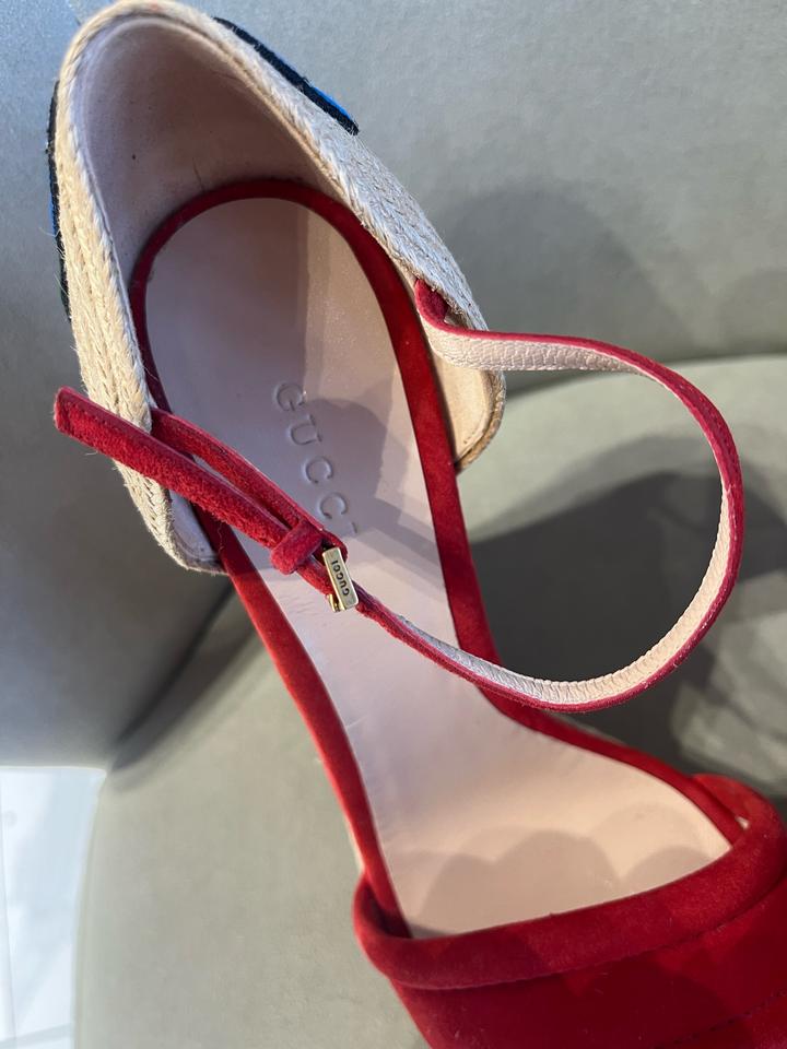 Gucci Красные замшевые эспадрильи на танкетке с цветочной вышивкой37