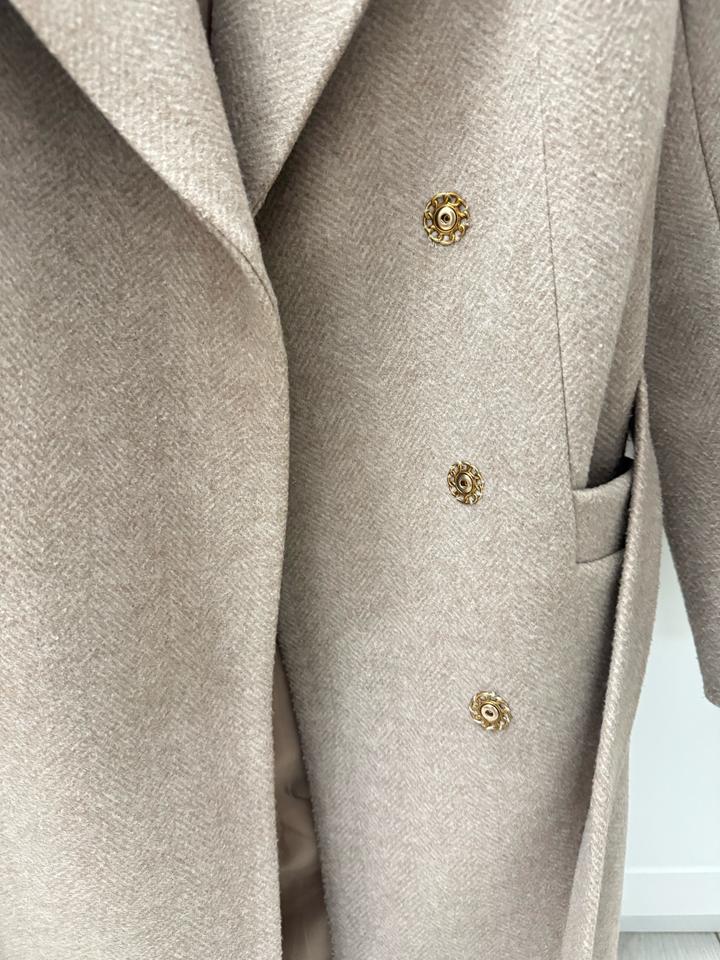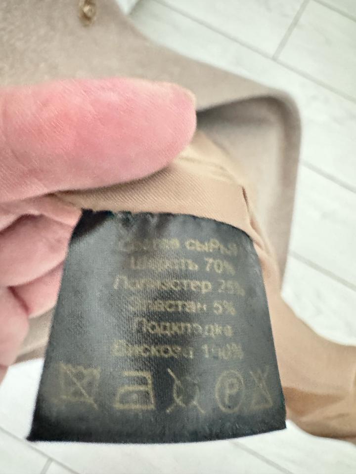 Бежевое пальто с шерсть +7### ### ## ##янии. С подкладом из вискозы Артикул: 521663