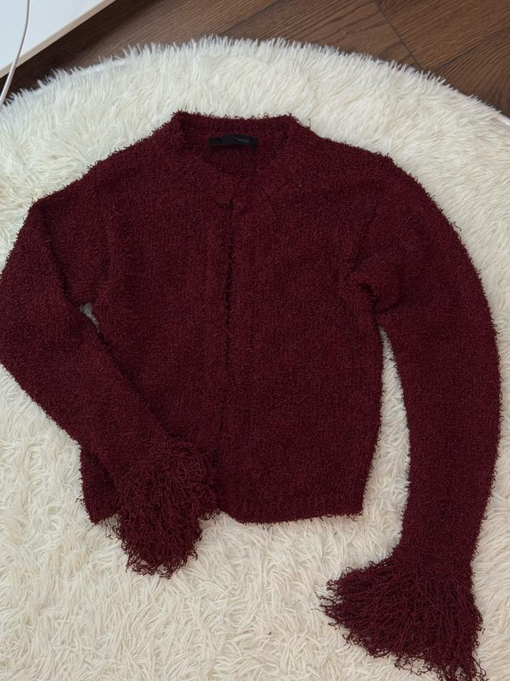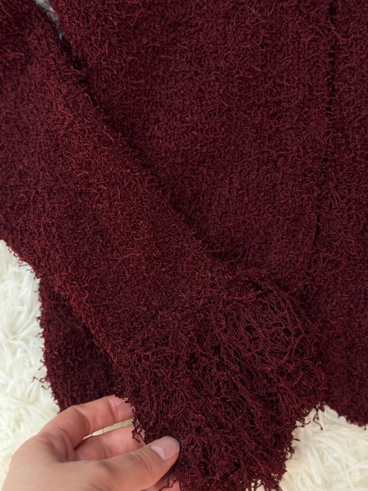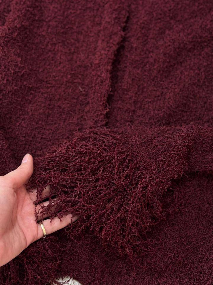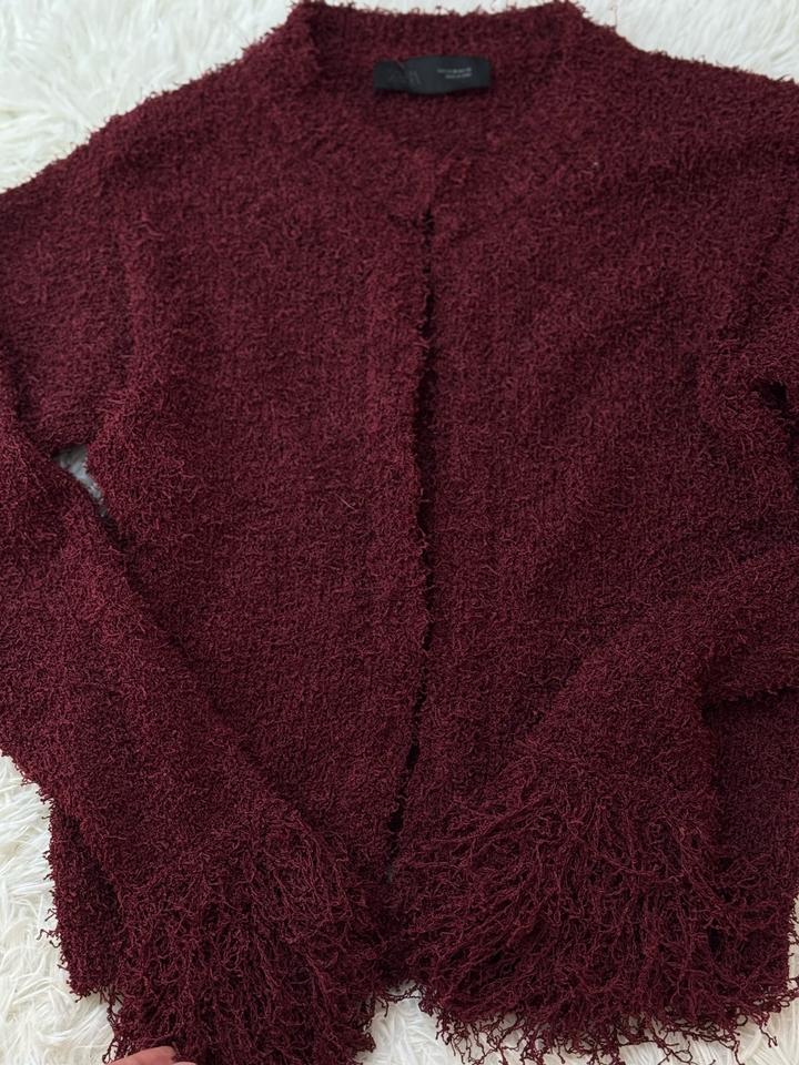 Очень удобная кофта от Zara. Бордовая фактурная кофта с бахромой Стильная кофта насыщенного бордового цвета выполнена из мягкого, приятного к телу материала с выраженной текстурой.Идеально подойдёт как для повседневных, так и для более нарядных образов. Артикул: 521673