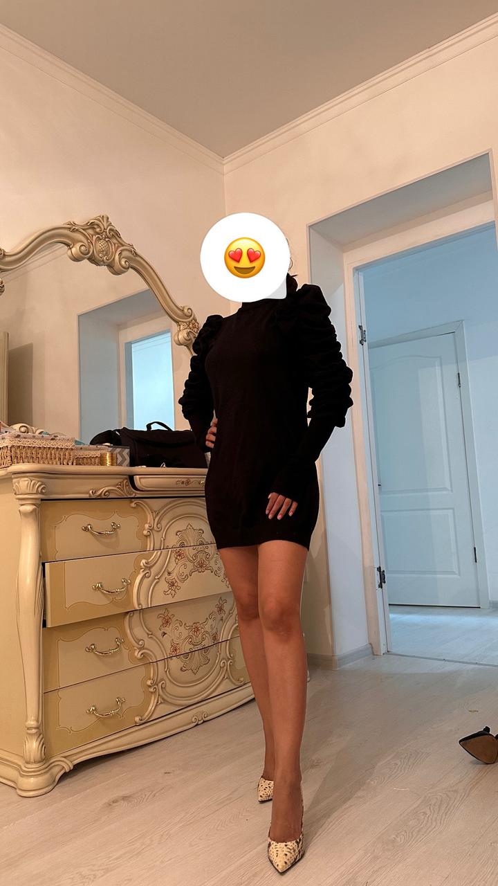 Чёрное платье с воздушными плечами с блёстками слегка очень качественное тянется можно сказать вечернее коктейльное Артикул: 521687