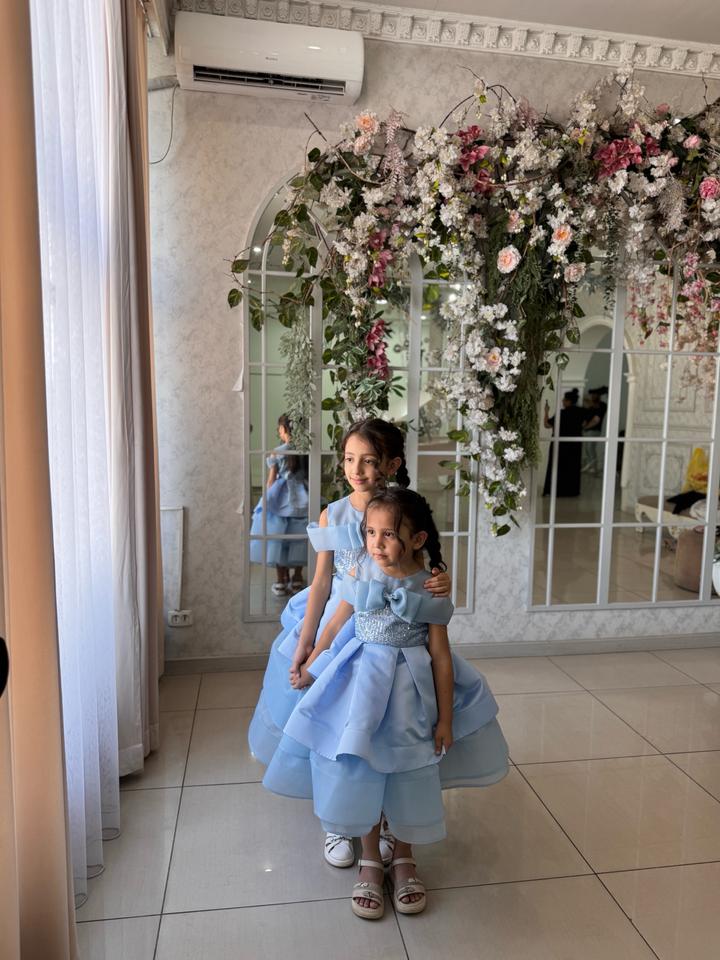 Одевали всего лишь раз на мероприятия, пошив индивидуальный, материал хороший, не дешевый! Маленький размер на девочку: 4-5лет Старшей: 7-8 лет Артикул: 521725