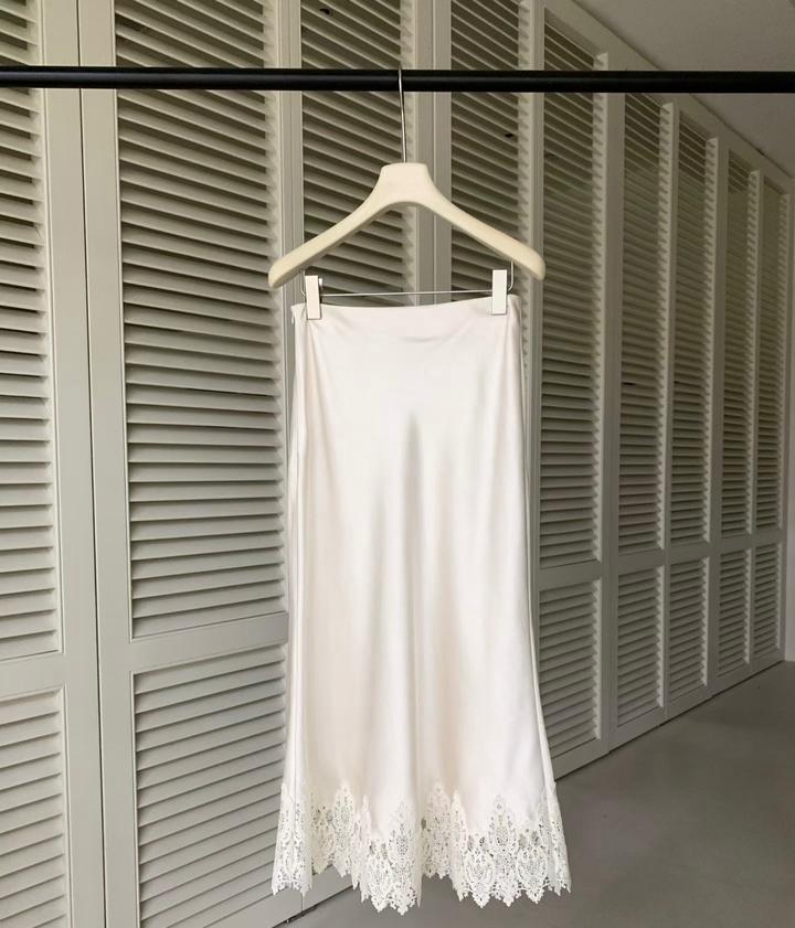Атласная юбка с кружевом, новая. Очень красивая юбка. M, L. Цена - 12880тг Артикул: 521739