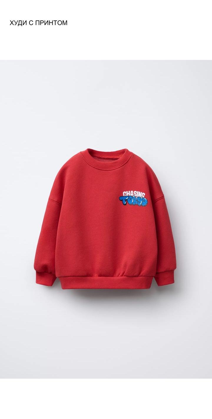 Худи с принтом Zara для мальчика или для девочки, без начеса, оверсайз, материал 100% хлопок 3х нитка, с яркой надписью спереди и сзади, состояние отличное Размер 86 Посадка oversize Также есть такое же Худи в синем цвете Артикул: 521756