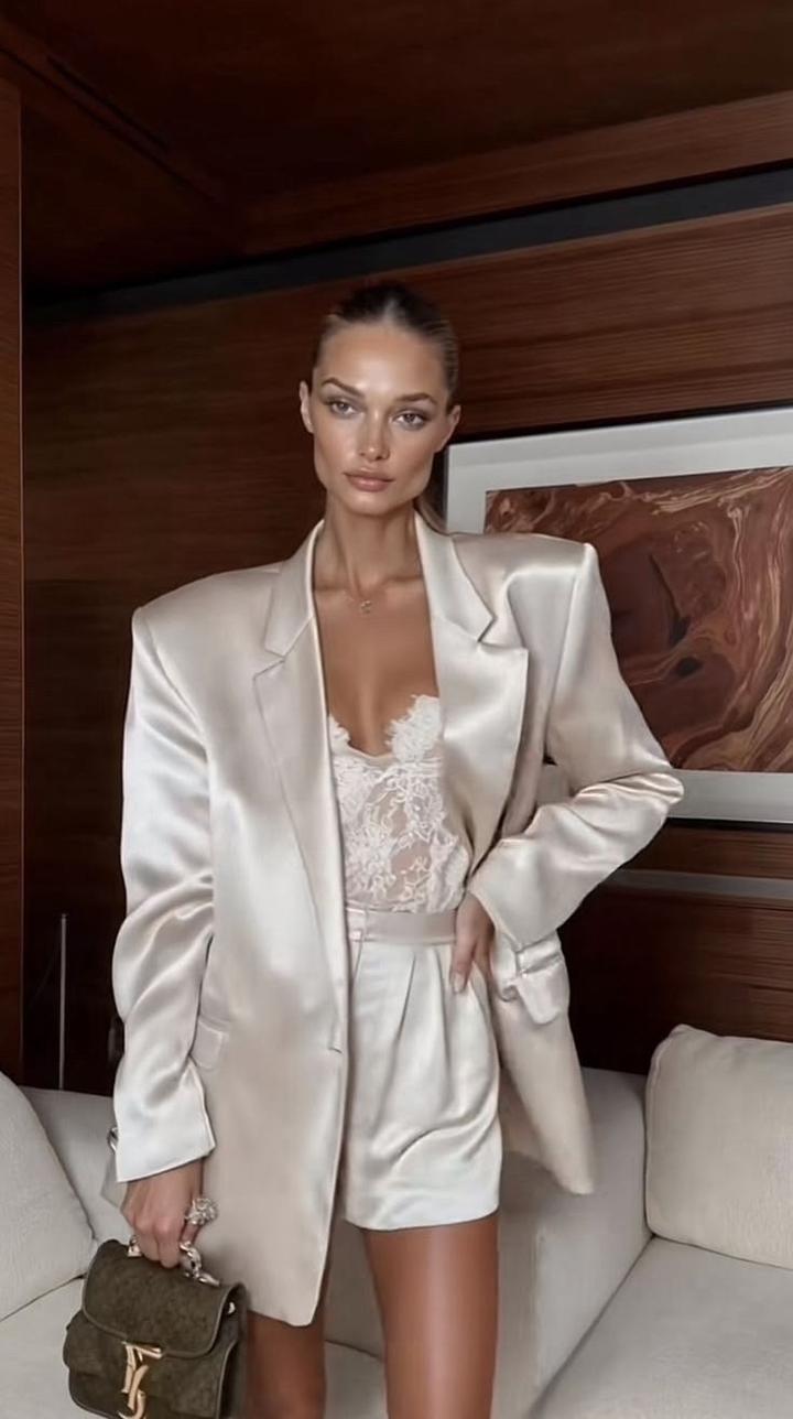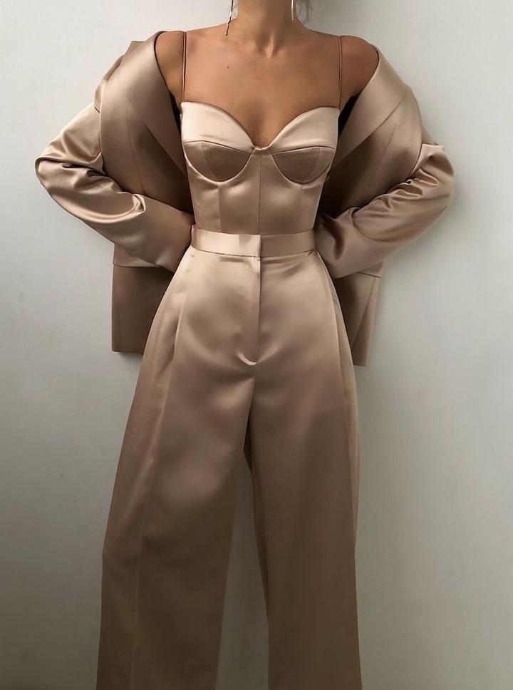 Пиджак атласовый в идеальном сост Сшили на заказ Бежевый жемчужный цвет Артикул: 521876