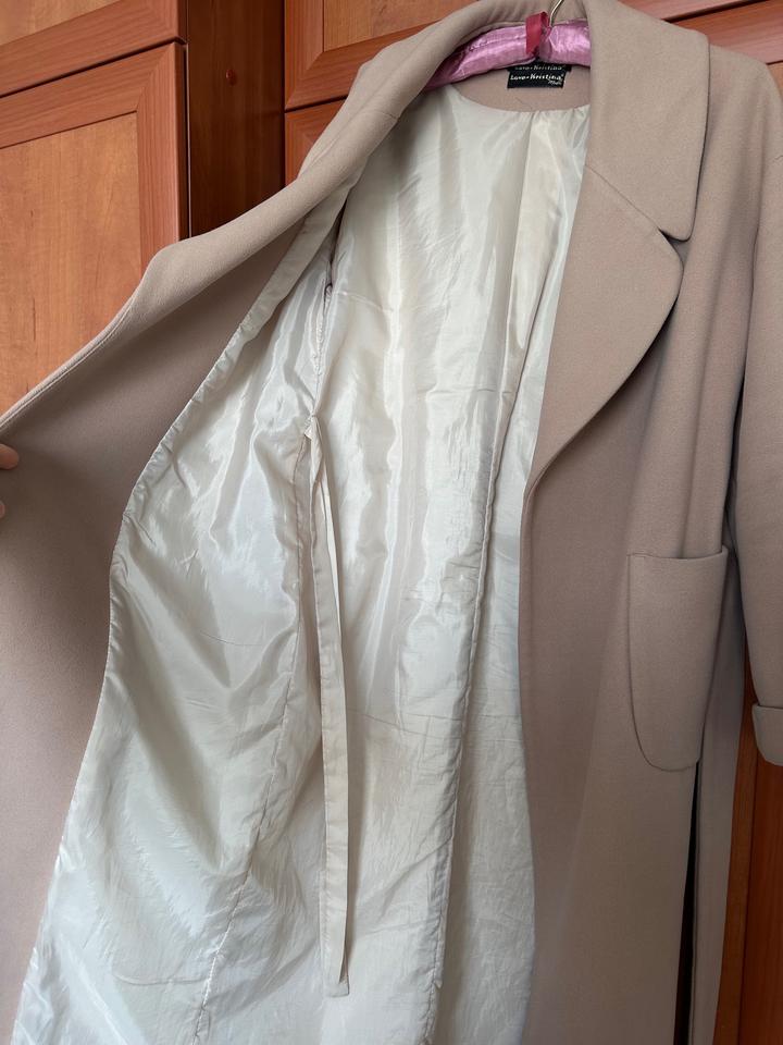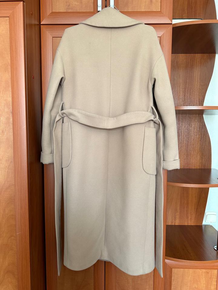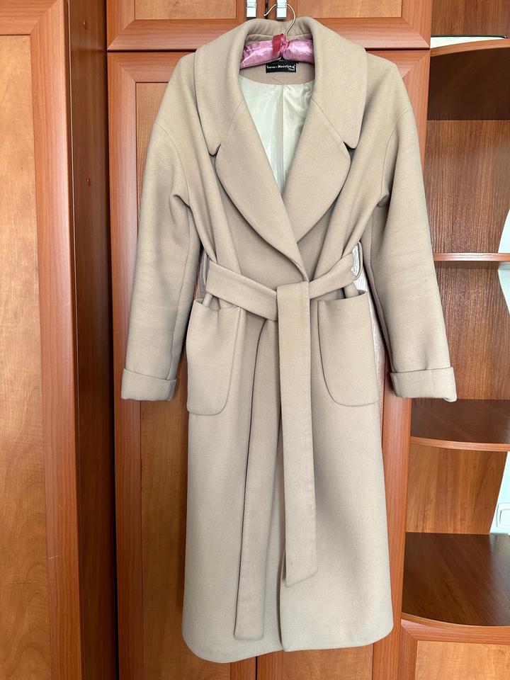 Пальто российского бренда Love-Kristina Moda, в составе 80% шерсти и 20% полиэстера, длина - 110 см. Размер S. Без пуговиц, внутри на завязках. Артикул: 522026