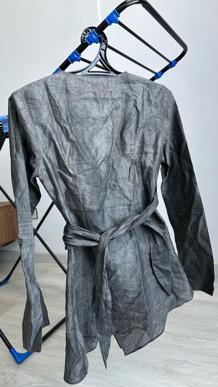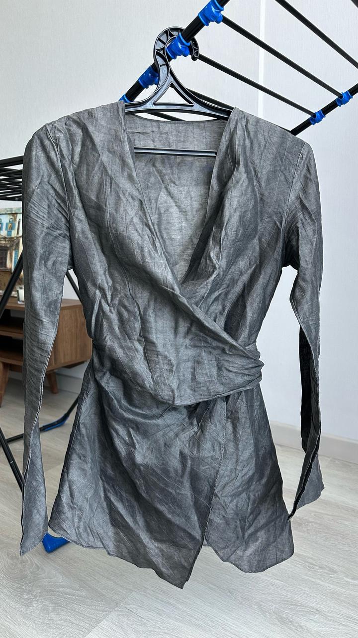 Тонкая рубашка на запах. Подойдёт на размер 42–44. Надевалась только для фотосессии, в идеальном состоянии-без пятен и дефектов. Артикул: 522046