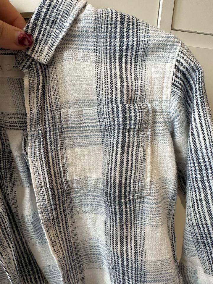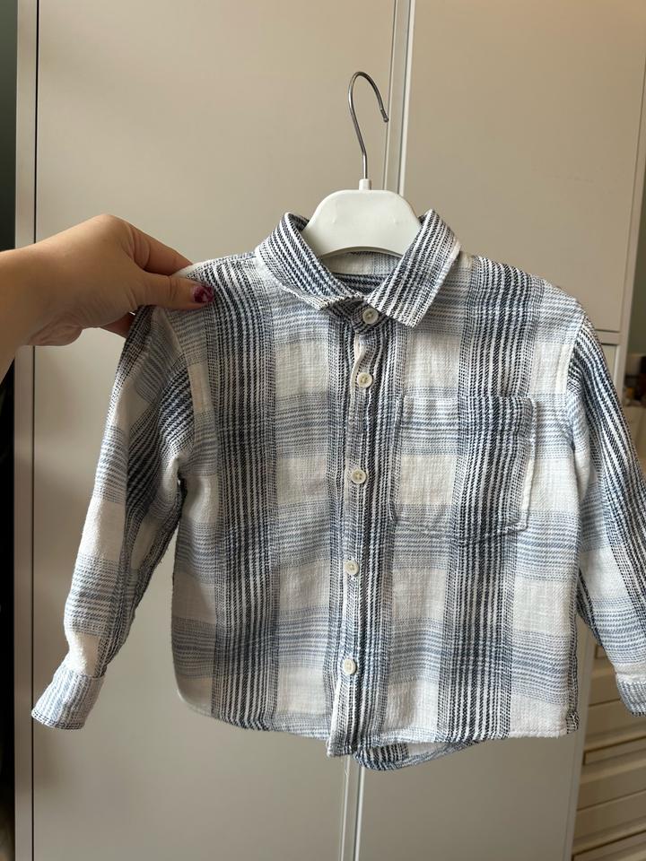 Рубашка в клетку, в расслабленном стиле Размер 86 (1,5года) Можно надевать как первый слой, и как второй слой В отличном состоянии Материал: хлопок На последнем фото пример образа, вещи из образа тоже можно приобрести Артикул: 522125