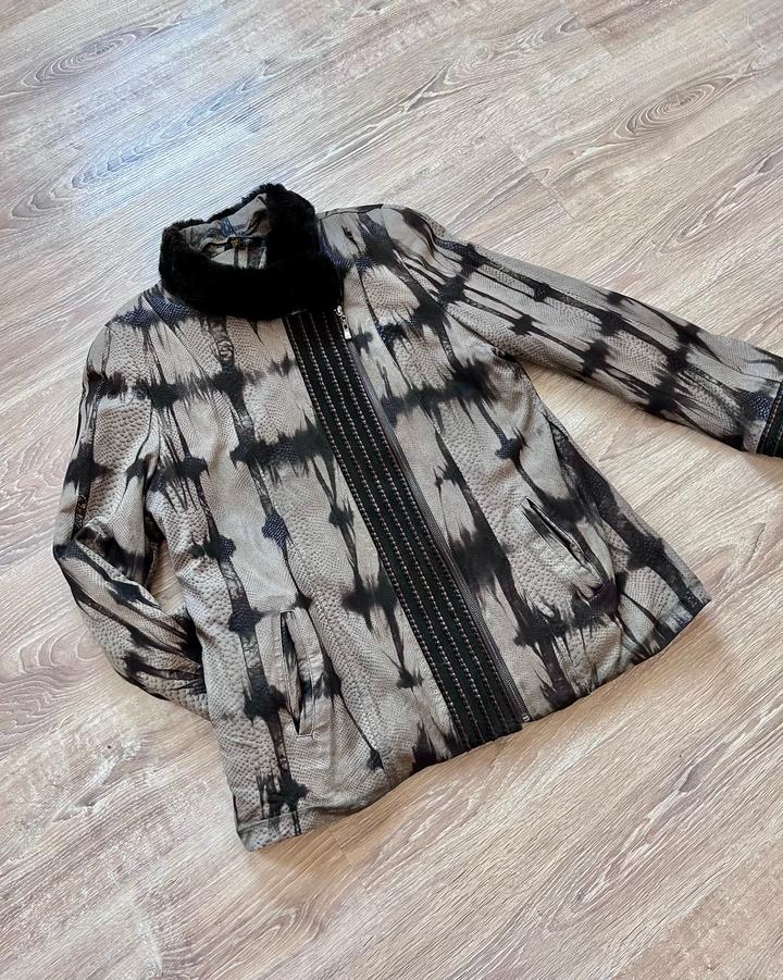 Пиджак на холодную осень (или на холодную весну на севере) Размер 50-52 Воротник норка Состояние хорошее, но есть дефект на плече (указала на последнем фото) Дефект можно исправить в ателье Сидит очень красиво Необычный раскрас Очень мягкая натуральная кожа❤️ Артикул: 522157
