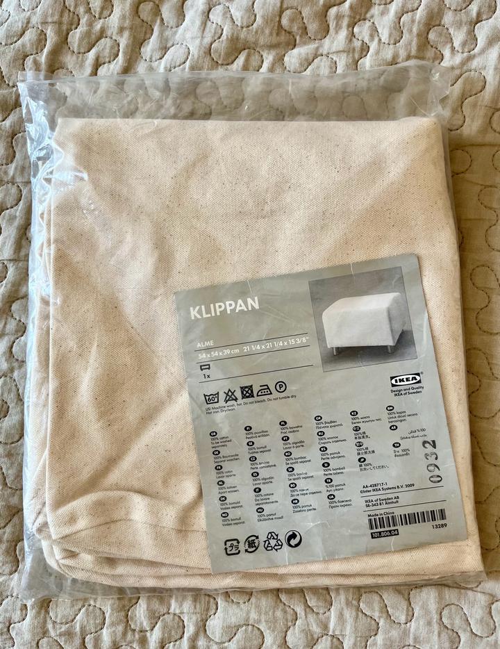 Чехол для пуфа IKEA Klippan. Бежевый цвет. Материал плотный хлопок. Размер 54*54*39 см. Новый, в упаковке. Артикул: 522194