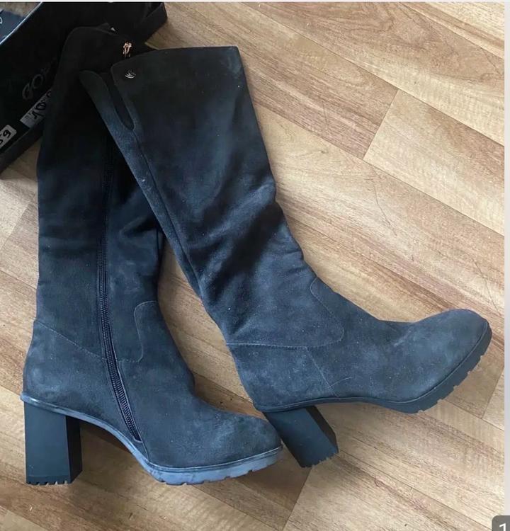 Сапоги зимние замшевые цвета графит с высоким голенищем , новые, 39 размер39