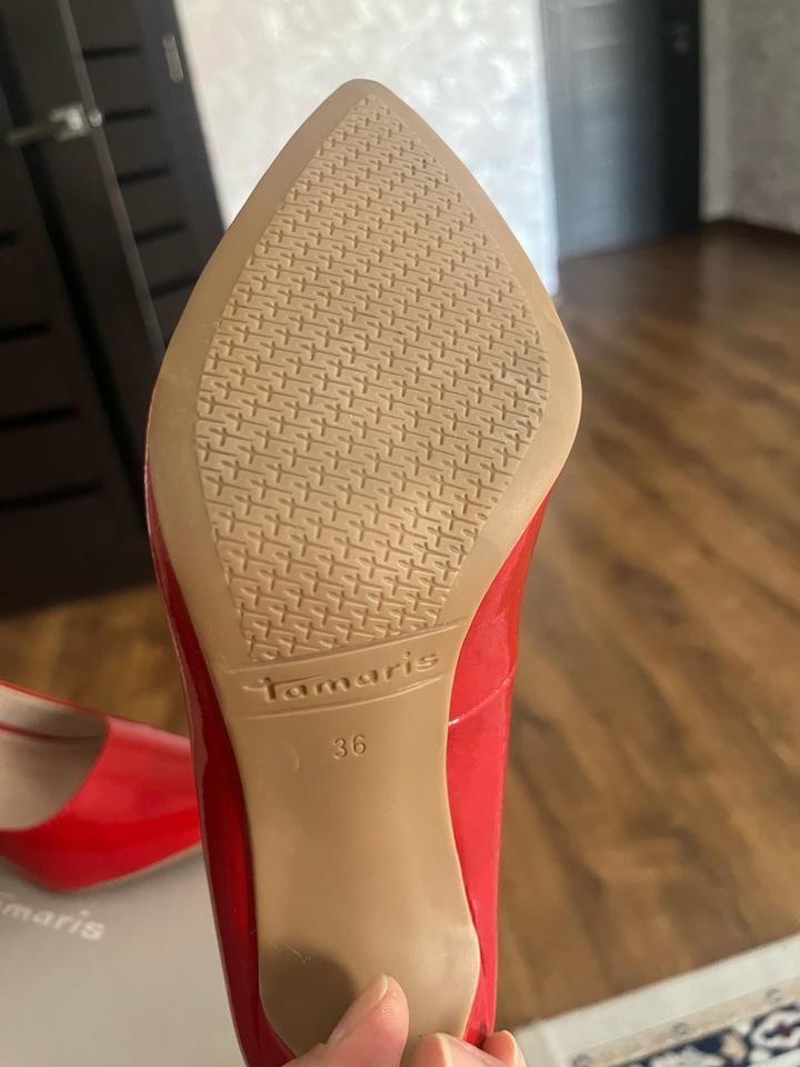 Новые туфли 2 пары (красные и черные ) лодочки от бренда Tamaris , покупались в сети магазинов INTERTOP , размер 36. Артикул: 522232