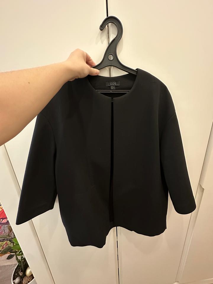Весенне-осенний пиджак от COS, структурный строгий крой, есть удобные карманы снаружи и внутри. Размер EUR 38, US 8, будет очень хорошо для тех кто носит S/М и любит немного оверсайз. Артикул: 522246