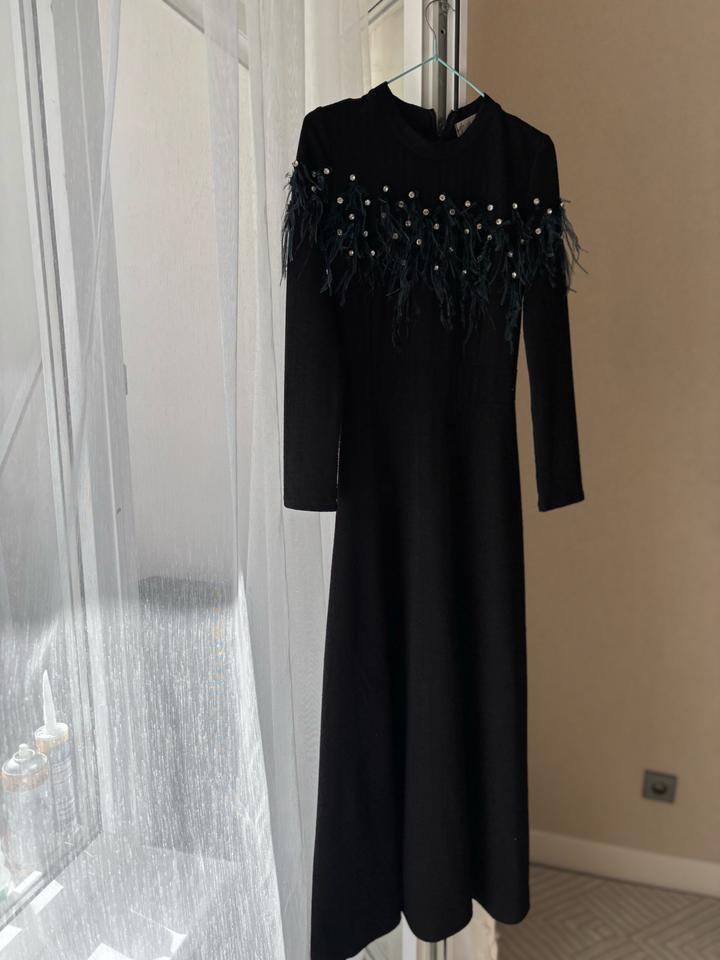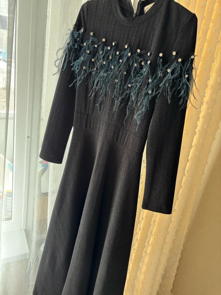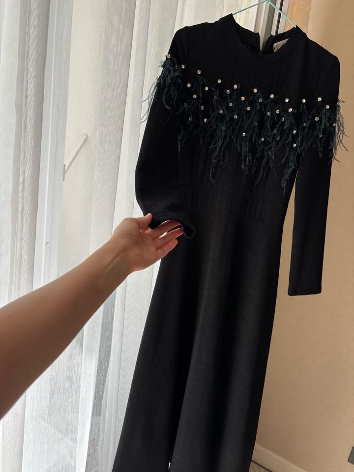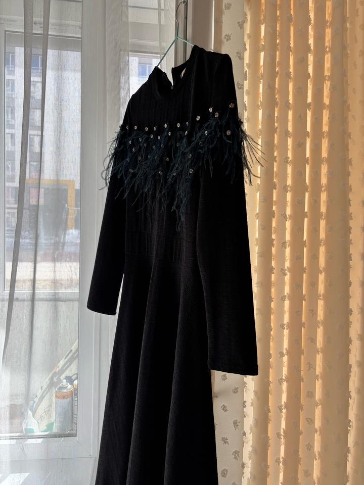 Черное платье с перьямиS/M