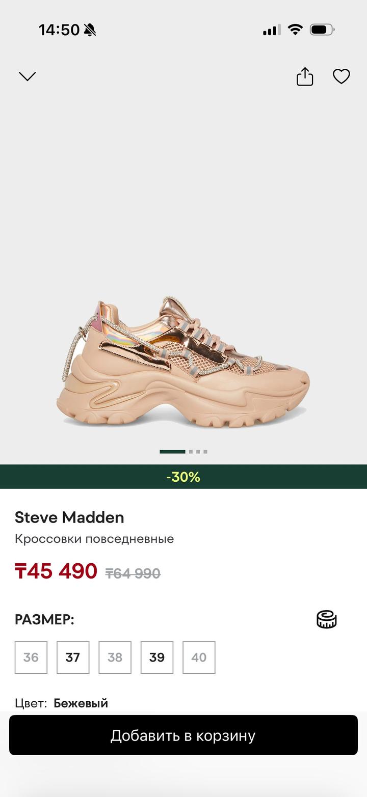 Кроссовки от бренда Steve Madden В отличном состоянии, в носке пару раз (к сожалению, оказались маленькие) Но они прям супер! Покупала в Интертопе, за 65 тыс Размер 36 Артикул: 522696