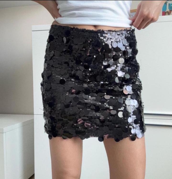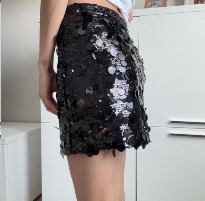 Мини-юбка с эффектным декором из крупных пайеток чёрного цвета. Модель облегающего силуэта, красиво подчёркивает фигуру и создаёт яркий вечерний образ. Пайетки переливаются при движении. Отлично подойдёт для вечеринок, мероприятий и стильных выходов. Артикул: 522733