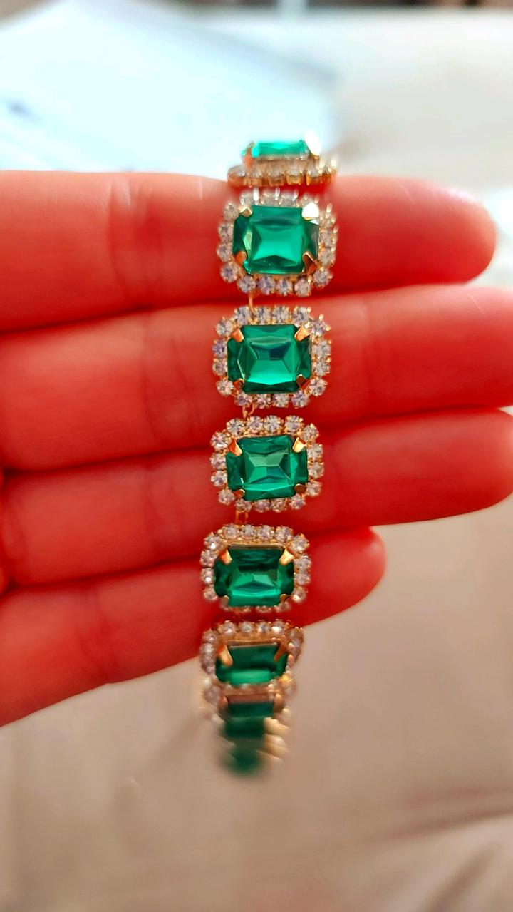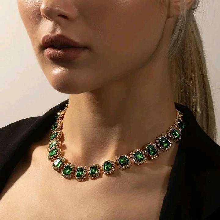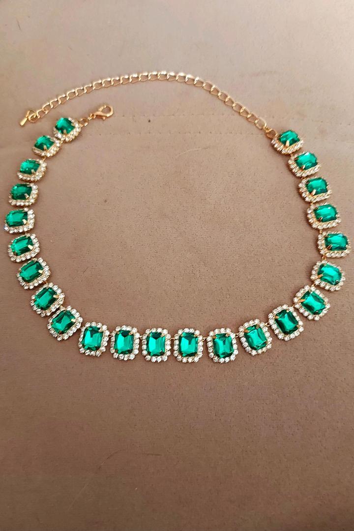 Закрытие отдела. Распродажа остатков бижутерии. Колье искусственные камни изумрудного цвета, обрамление белыми камешками в золоте Артикул: 522749