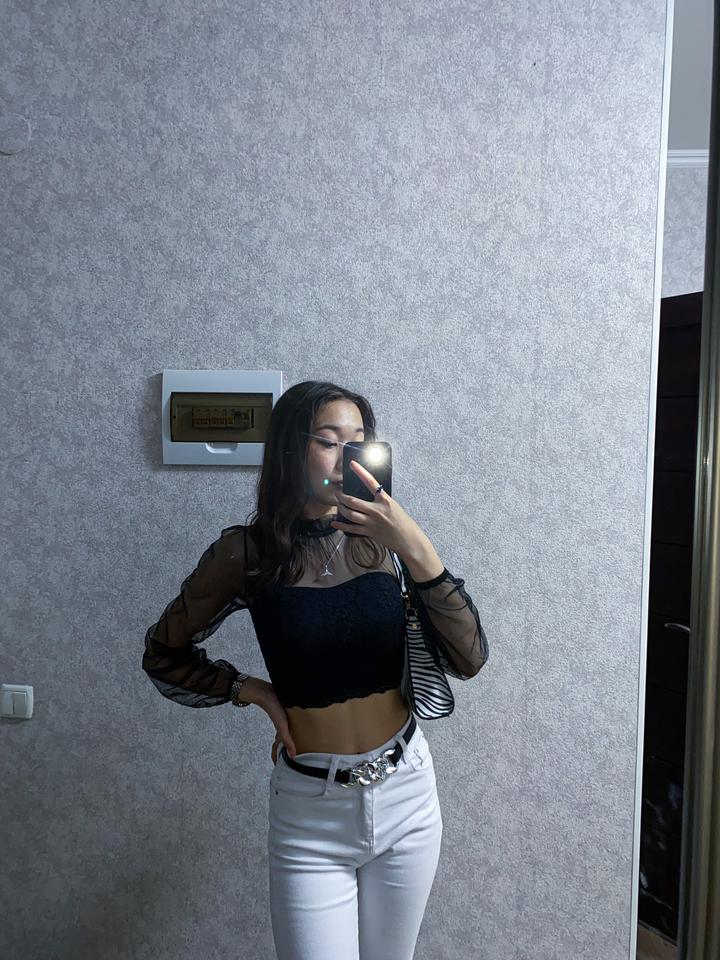 Чёрная облегающая кофта-топик размера S, подчеркивает грудь и талию. Одевала 2 раза Артикул: 522813