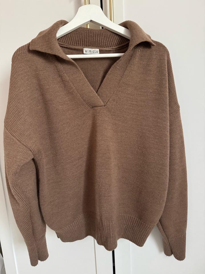 Джемпер aim clo с воротником поло в кофейном цвете. Размер one size,50% шерсть мериноса и 50% акрил. Артикул: 522844