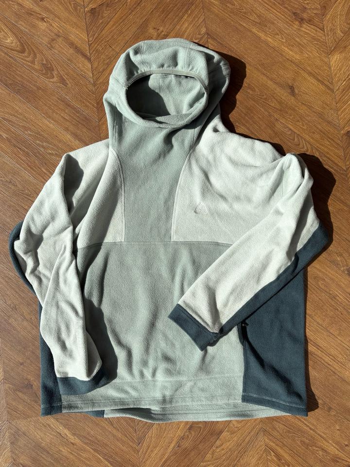 Тёплая и удобная флиска из линейки ACG — идеальный вариант на осень, весну или как средний слой зимой. Мягкий флис хорошо держит тепло и при этом дышит. — Оригинальный Nike ACG — Свободный комфортный крой — Высокий ворот с капюшоном (защита от ветра) — Контрастные вставки по бокам — Минималистичный логотип ACG на груди — Состояние: отличное, есть пара незаметных потёртостей Отлично подходит как для города, так и для поездок / аутдора. Артикул: 522884