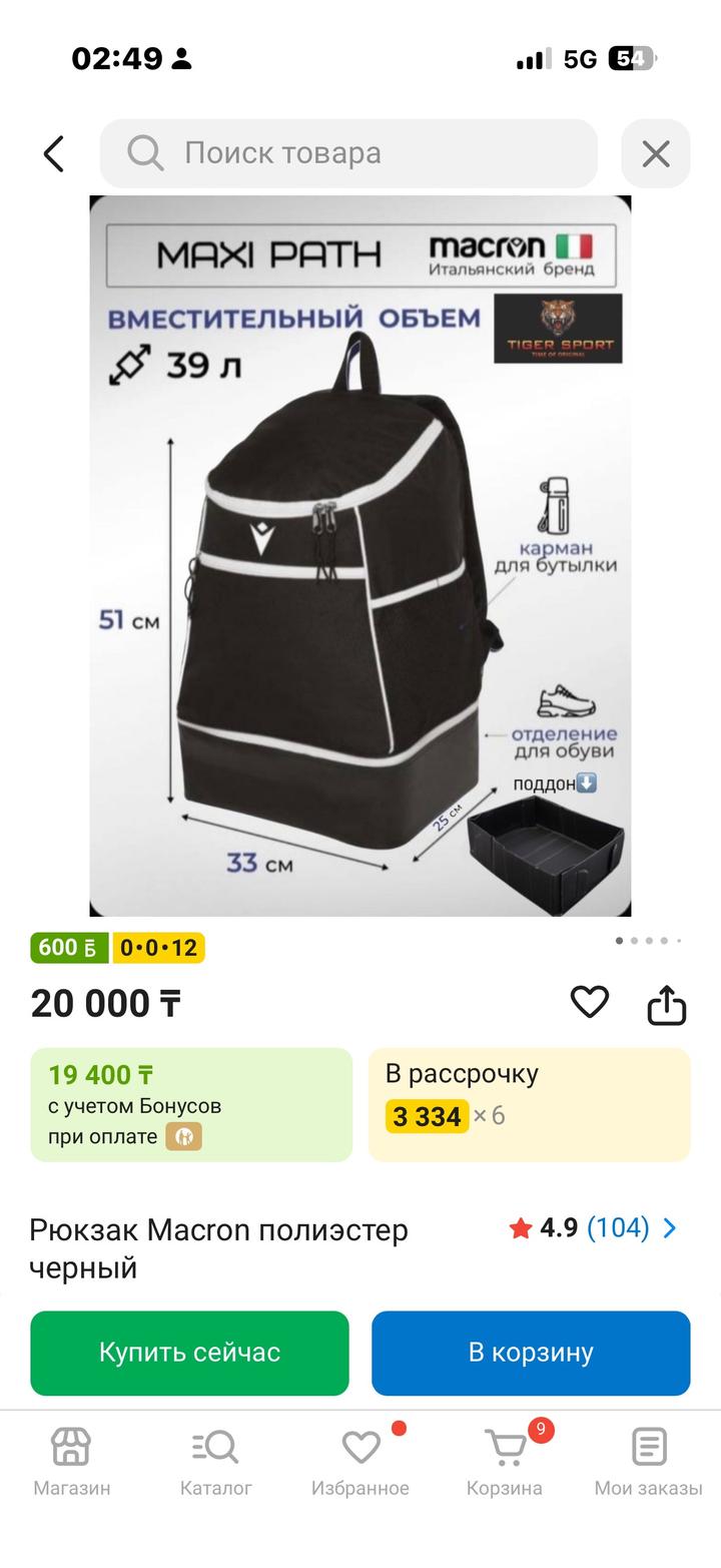 Оригинал рюкзак 39 л Носила пару раз Чёрный цвет, есть отделение для обуви, можно для тренировок: волейбол, футбол, баскетбол и т. д. Артикул: 522903