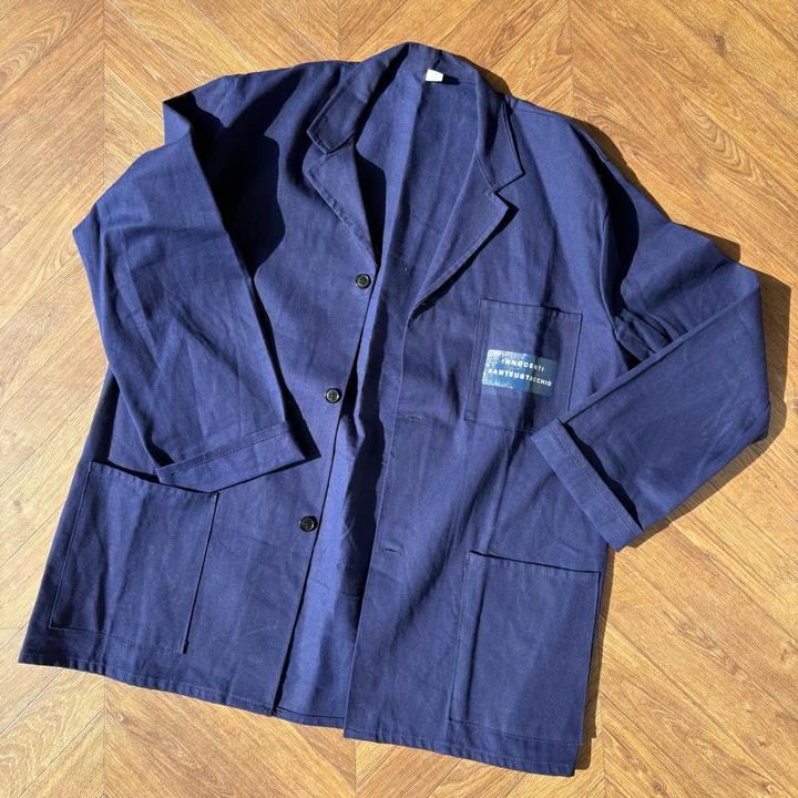 Аутентичная винтажная куртка роба из итальянского ателье — минималистичный рабочий силуэт с характером. — Made in Italy — Размер: 52 (примерно L–XL) — Плотная ткань (похожа на хлопковый твилл) — Классический chore / atelier крой — Три фронтальных кармана — Глубокий тёмно-синий цвет — Состояние: винтаж, есть лёгкие следы носки Отлично вписывается в эстетику workwear / minimal / european vintage. Артикул: 522927