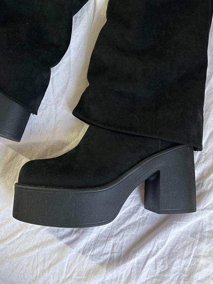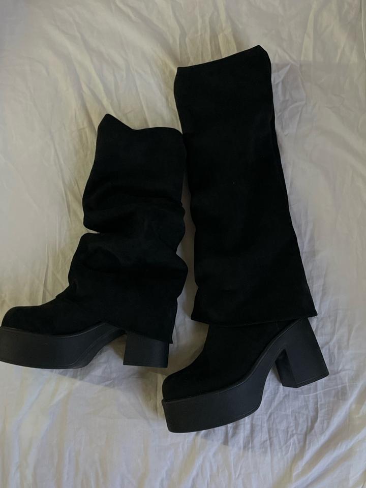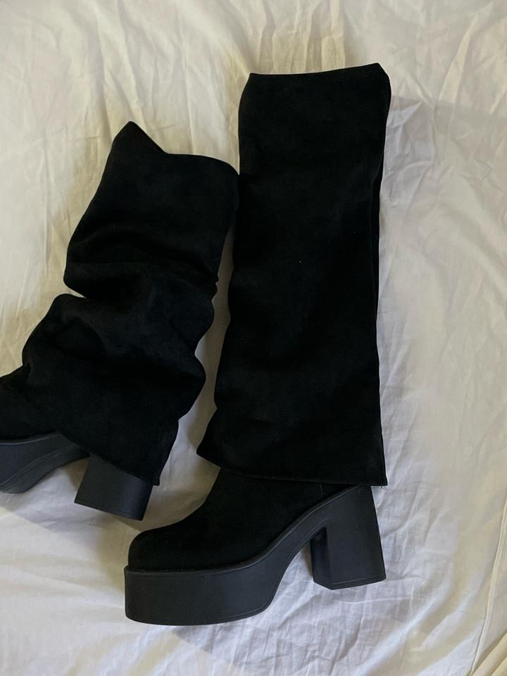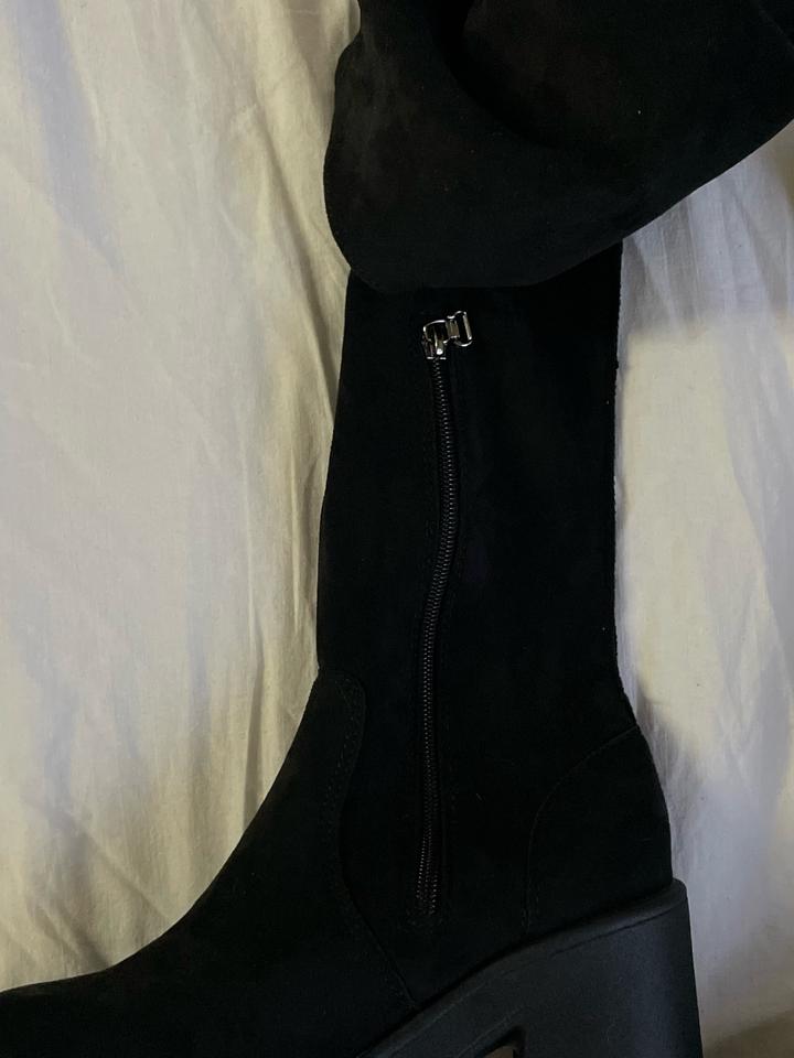 - Черные высокие ботфорты под замшу - Размер 40 (может на 39 тоже подойдет) - Ни разу не носили, не угадала с размером 🥹 Брала в шоуруме Ollie - Сам чулок мягкий, можно очень красиво спустить их немного вниз, будет здорово выглядеть! - Внутри есть замочек, чтоб было удобнее надевать - Обувь проклеенная - На весну отлично подойдет 🤍 Коробка и пыльник для каждого сапожка имеется! Артикул: 522949