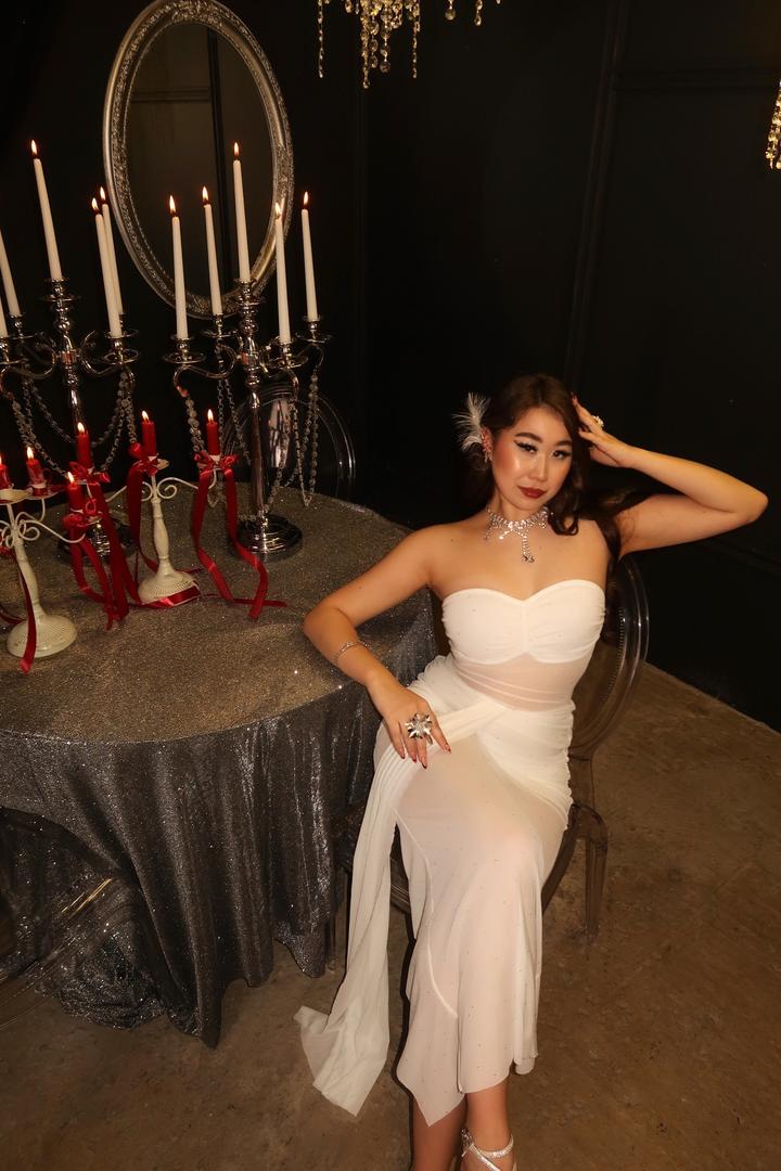 Белое облегающее платье со стразами размера М, но подходит и для S . Одевала 1 раз Артикул: 523054