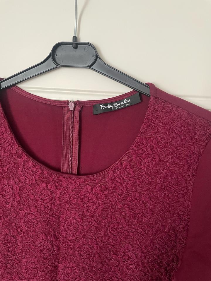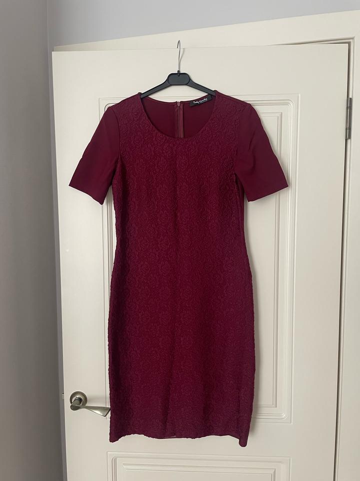 ✨ Элегантное платье Betty Barclay, размер S Стильное и женственное платье глубокого бордового оттенка — идеальный вариант для офиса, ужина или особого случая. 🔹 Бренд: Betty Barclay 🔹 Размер: S 🔹 Цвет: насыщенный бордовый (очень благородно смотрится вживую) 🔹 Фасон: приталенный силуэт, аккуратно подчеркивает фигуру 🔹 Длина: до колена 🔹 Рукав: короткий 🔹 Ткань: с текстурным узором, выглядит дорого и элегантно 🔹 Застежка: молния сзади Платье сидит очень аккуратно, не просвечивает. Артикул: 523289