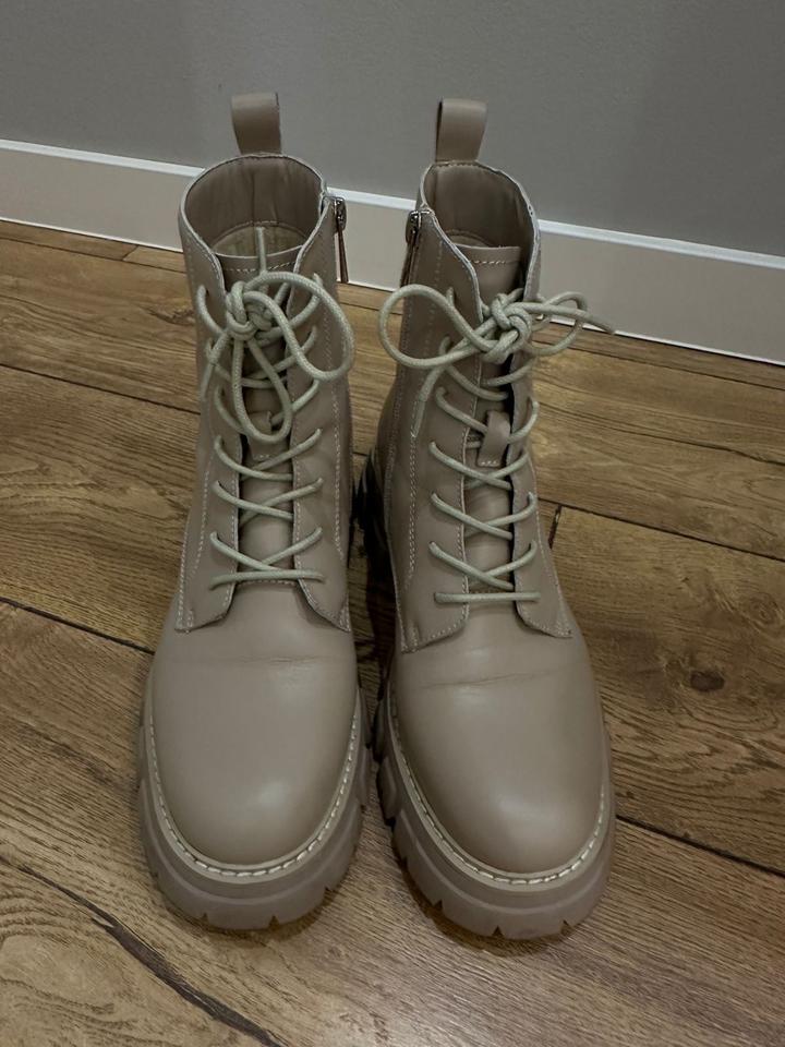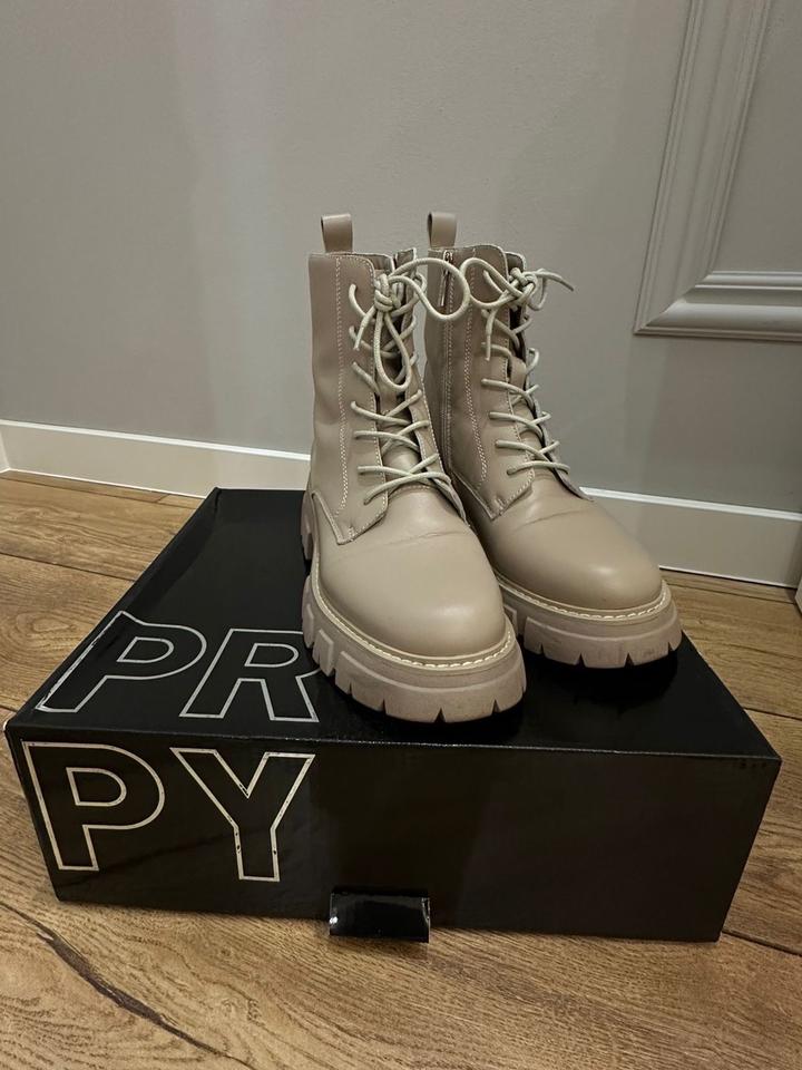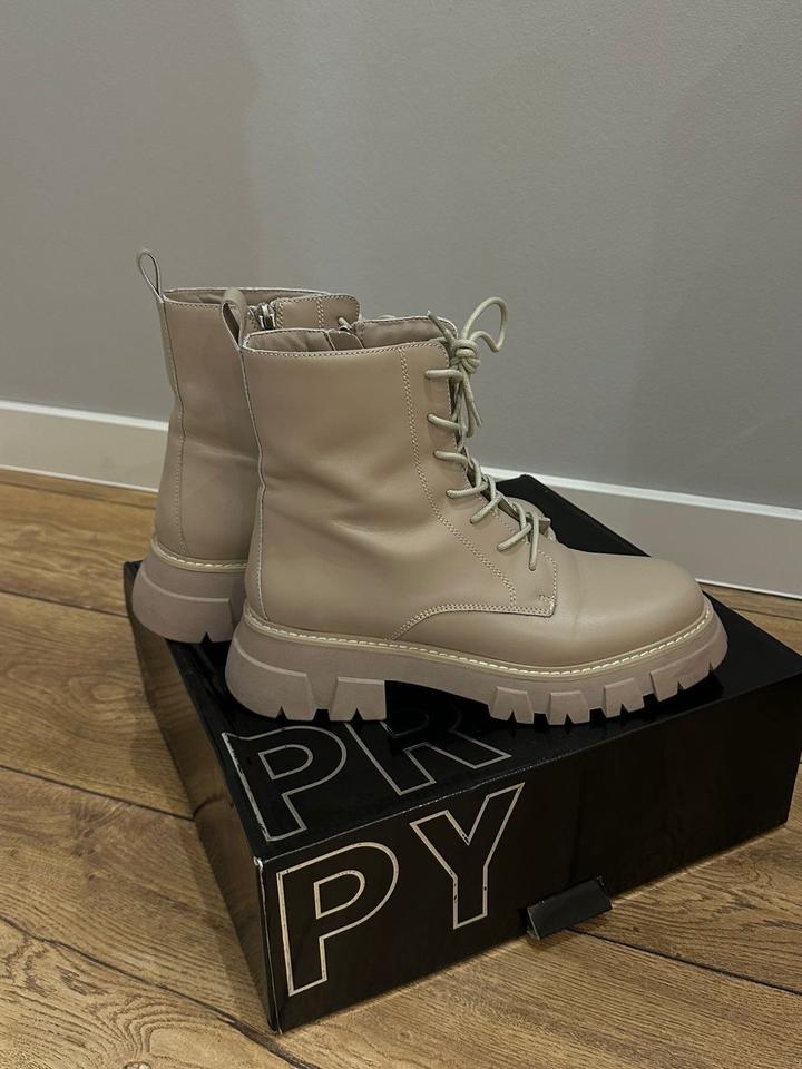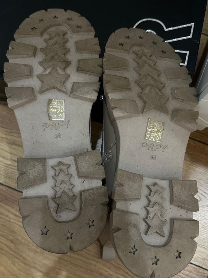 Продам демисезонные ботинки из натуральной кожи итальянского бренда PRPY. Спереди на шнуровке, сбоку на замке, внутри тонкий плюш. Подошва толстая не скользкящая, можно носить до глубокой осени. Мягкие, комфортные, удобные. Размер 39. В идеальном состоянии, без дефектов Артикул: 523392