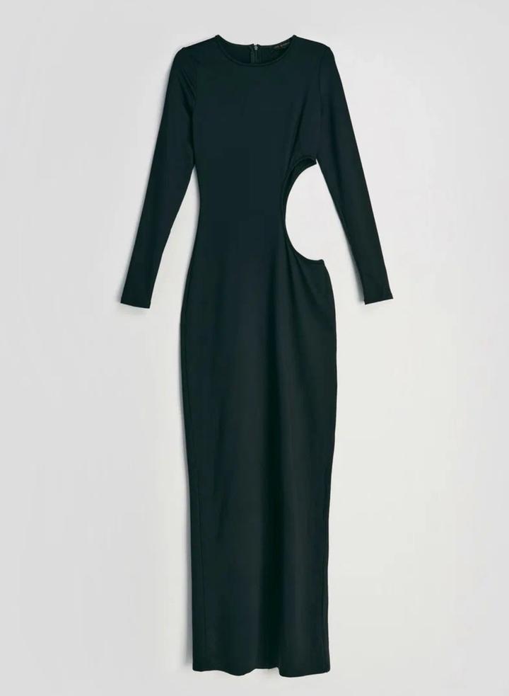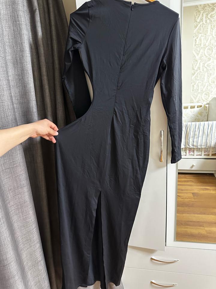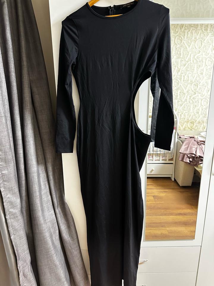 Черное платье в пол с пикантным разрезом на боку и сзади. Одевалось 1 раз. В отличном состоянии. Ткань тянется (эластан и полиамид). Подойдет больше на L. На М более расслабленный вариант. Артикул: 523680