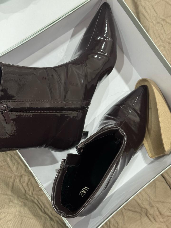 Ботильоны на невысоком каблуке от Зара,Стильные ботильоны в трендовом оттенке шоколада Размер: 38 Состояние: хорошее, носились аккуратно Артикул: 523749