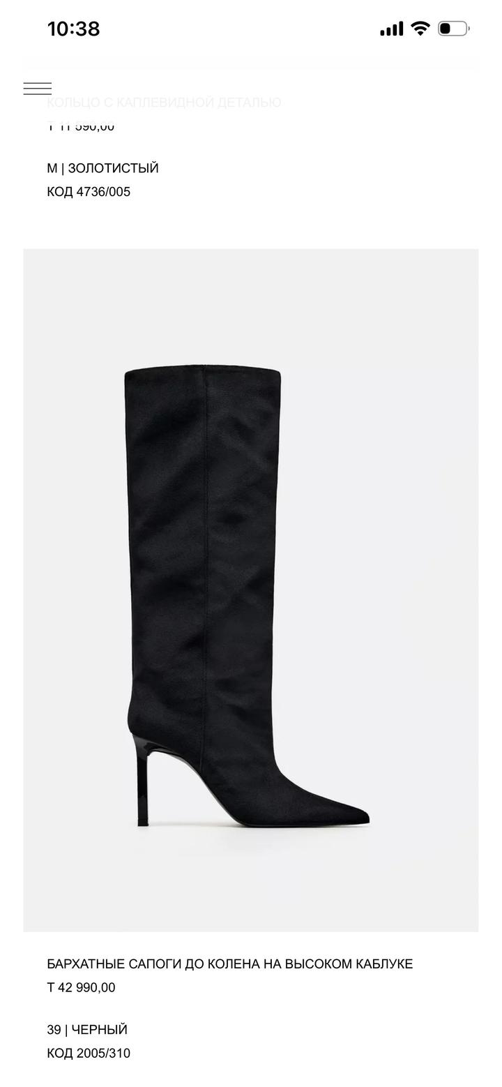 Сапоги бархатные Zara39