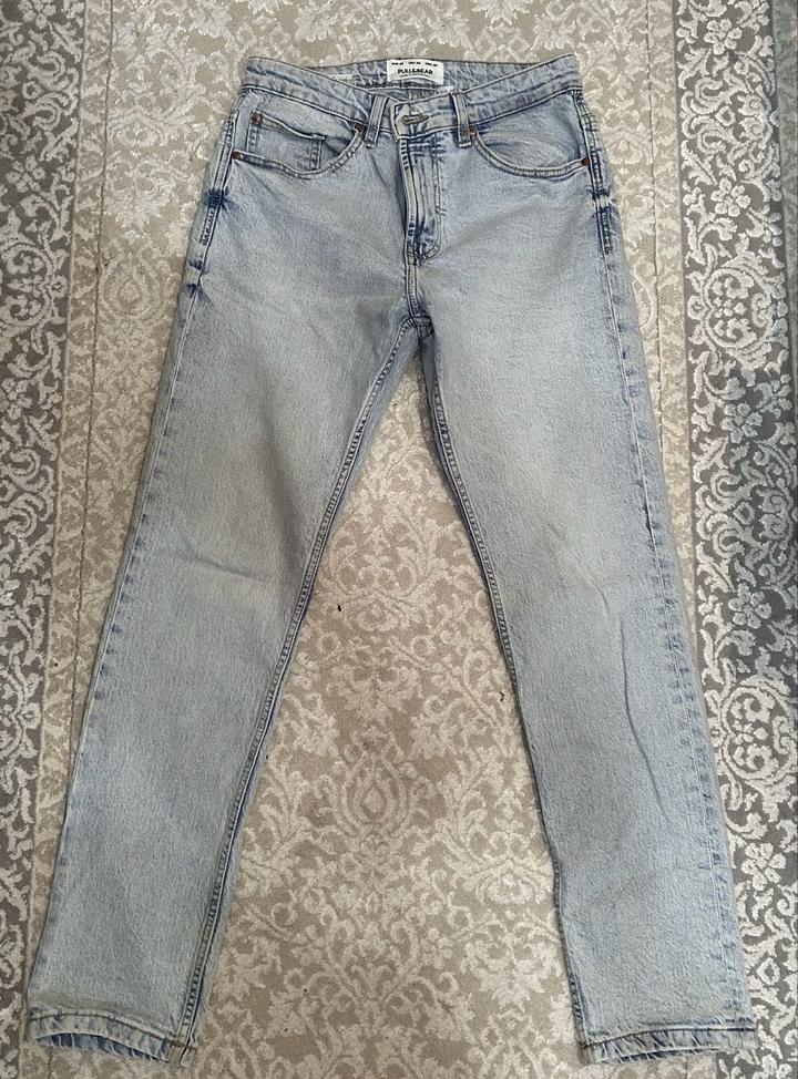 Голубые джинсы straight из Pull&Bear, 38 размер. Состояние новое практически не носил. Артикул: 523804