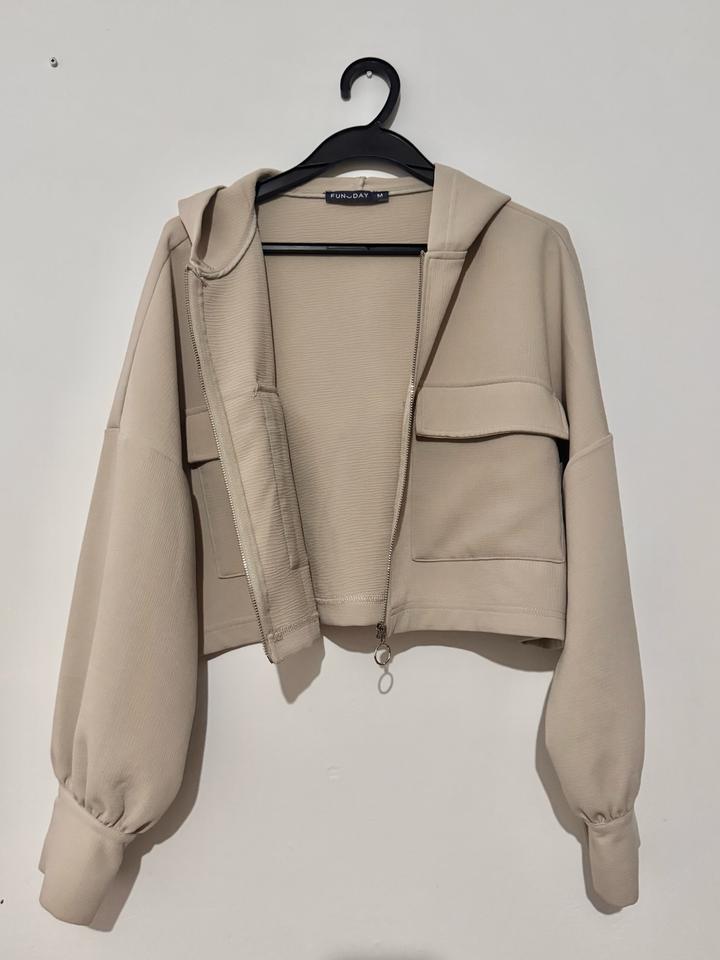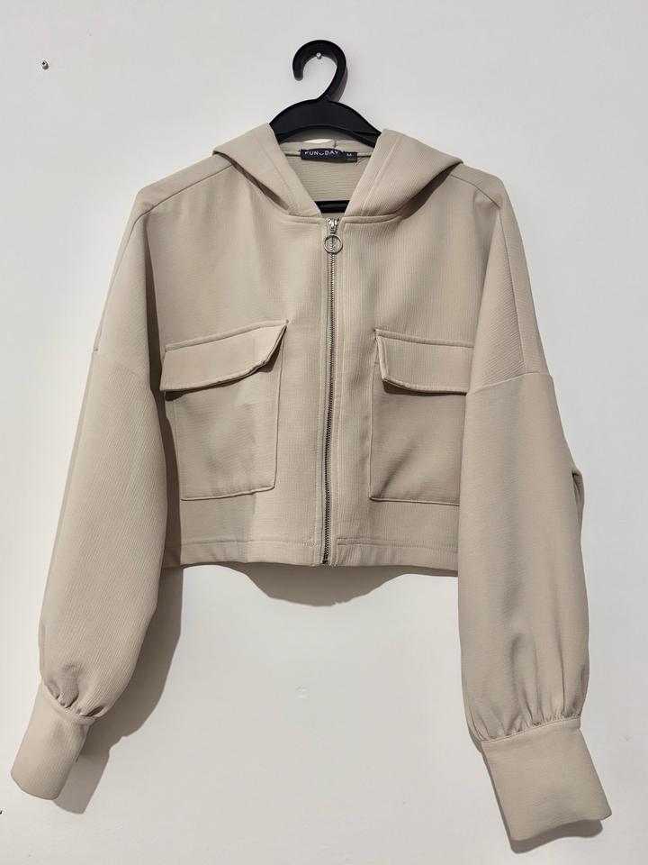 В размере M, укороченная зипка в бежевом цвете. Покупали за 16к. На лето отлично подойдёт как накидка, материал не плотный. Особо не носила так как поменяла стиль Артикул: 523828