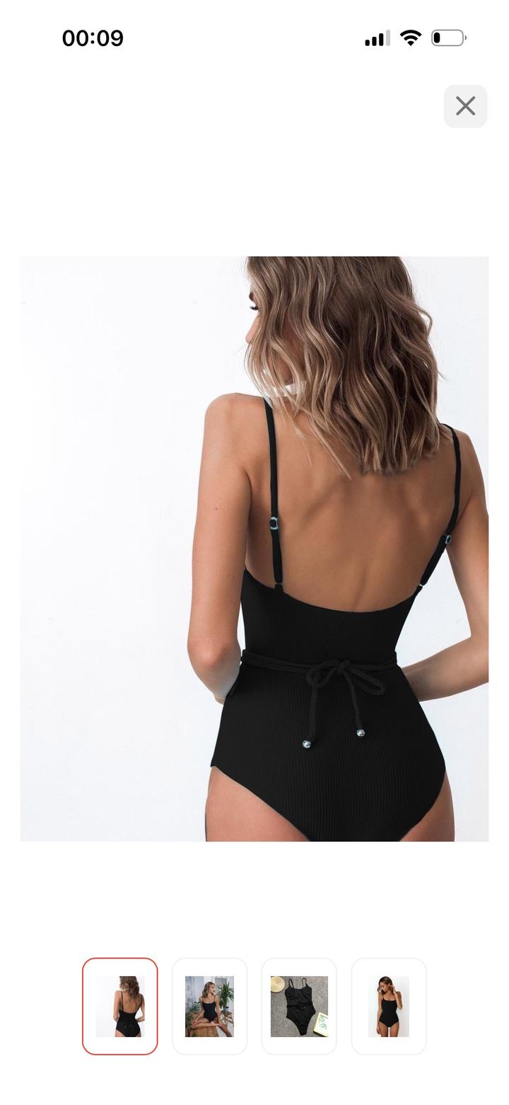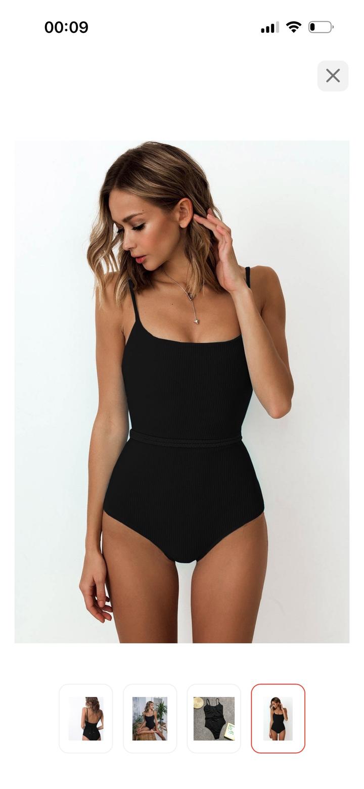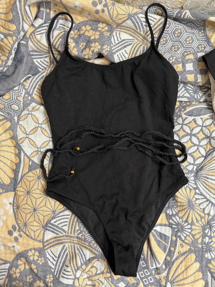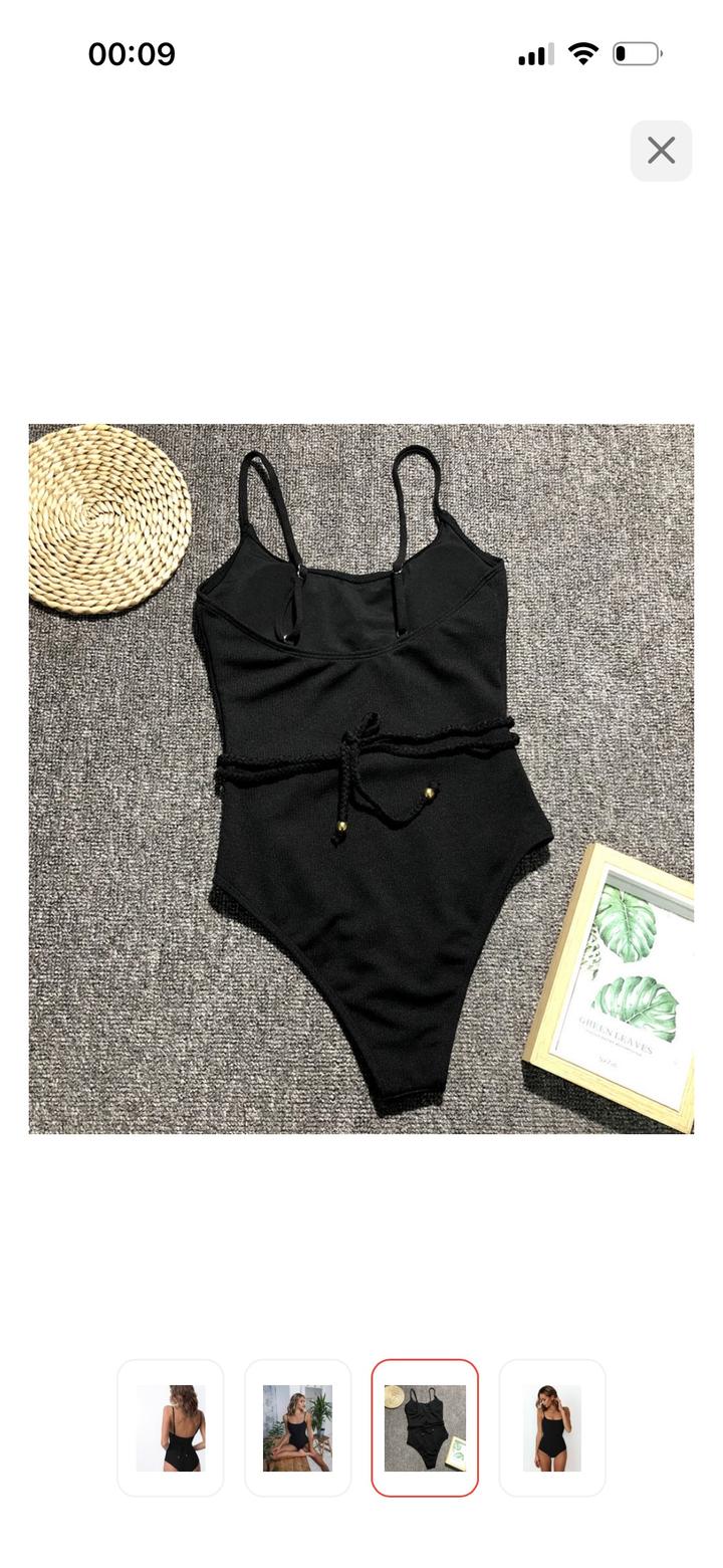 Черный слитный купальник с поясомL