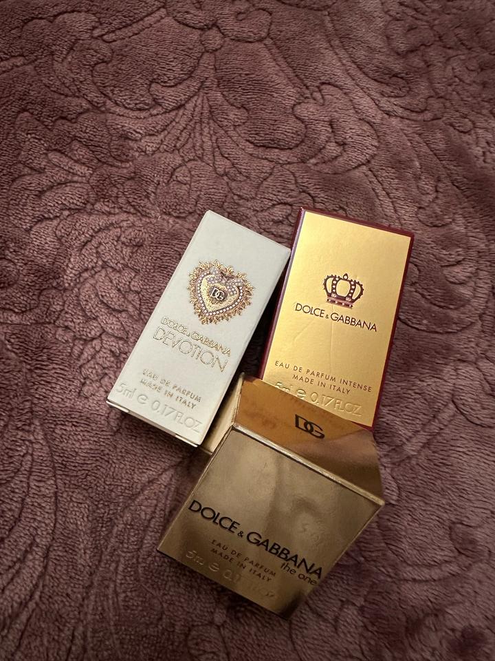 3 мини версии духов от Dolce&Gabbana по 5 мл. Dark cherry amber heliotrope, the one, devotion. Удобно носить с собой в сумке. Артикул: 524026