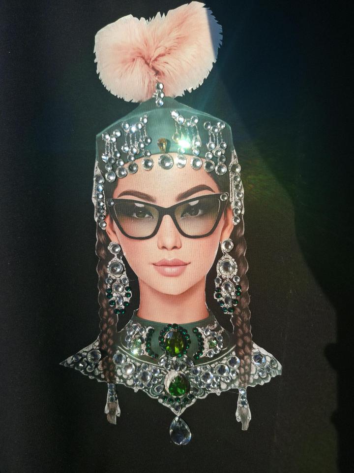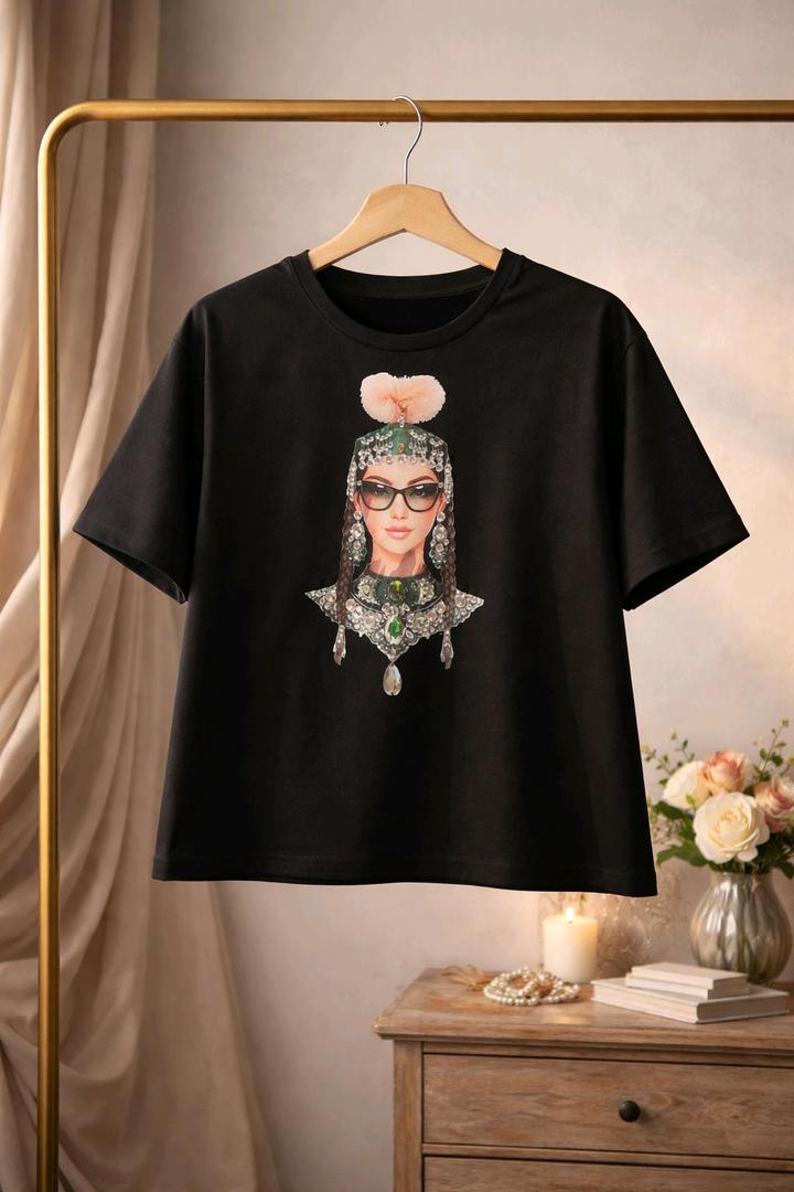 Футболка"Я казашка" ручной работы ,сшита из футера 2х нитки , стразы и камни пришивные ,размер стандарт подойдёт и на 48 Артикул: 524302