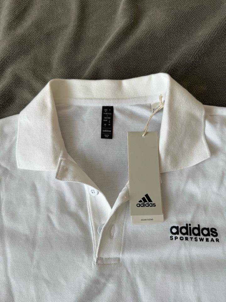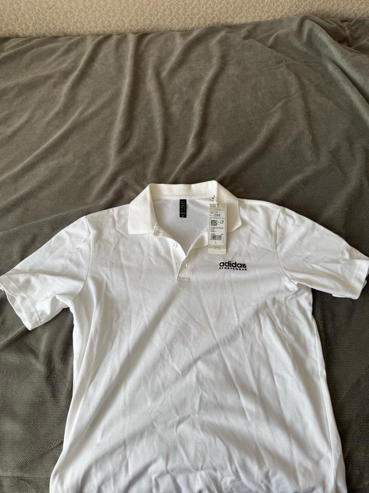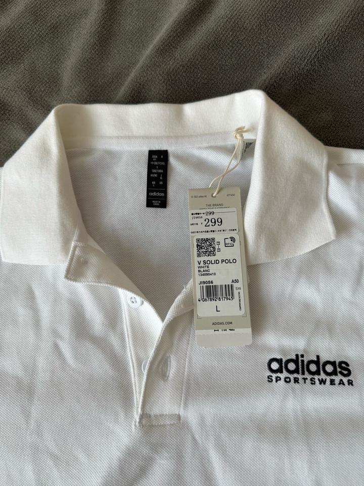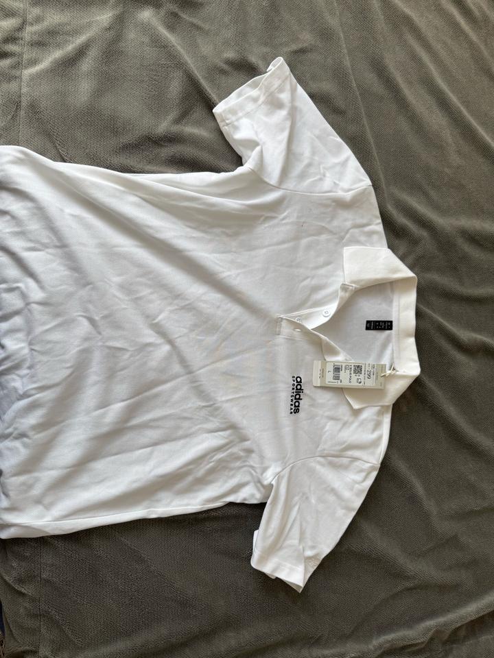 Белое поло,покупали официально в адидасе,как положенно с биркой,кьюар код,размер оказался большим Артикул: 524400