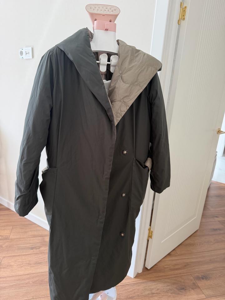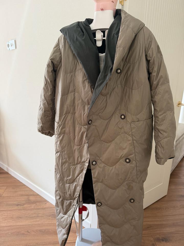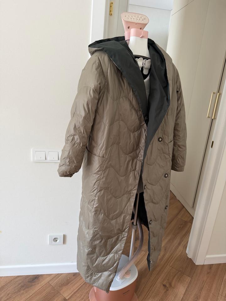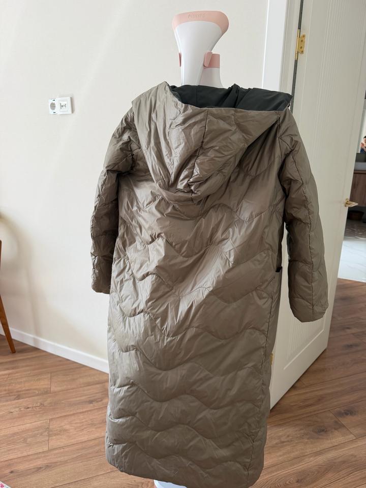 Двухсторонний пуховик в отличном состоянии Можно носить на две стороны два разных образа Тёплый, лёгкий и удобный Размер стандарт , производство турция Артикул: 524445