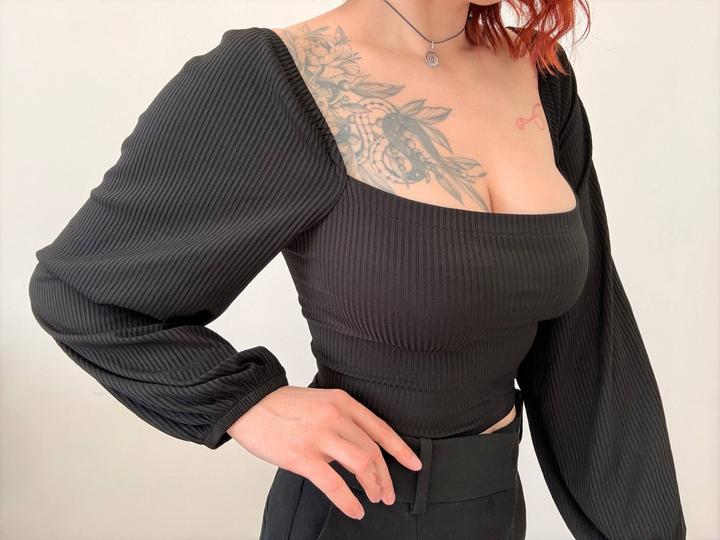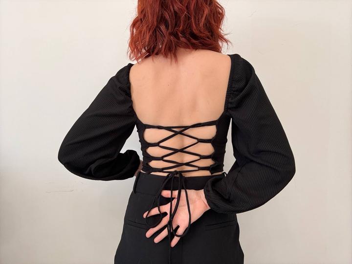 Чёрный кроп-топ с завязками на спине — идеально подойдёт как для ежедневного образа, так и для выхода в свет Артикул: 524581