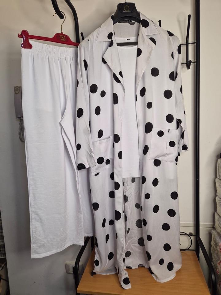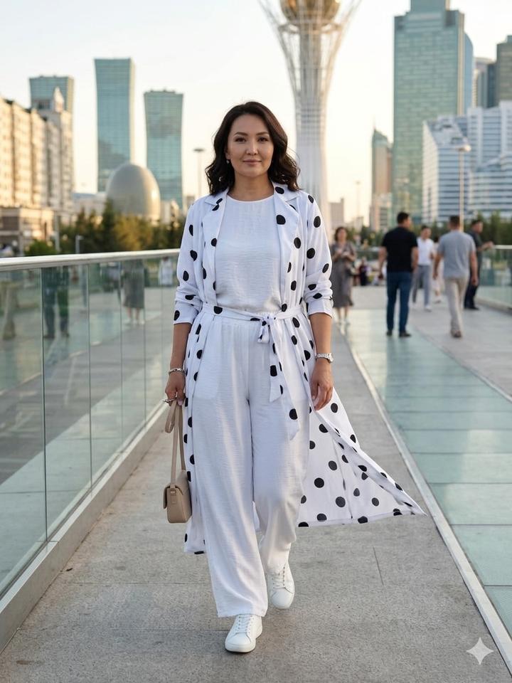Элегантная тройка в светлой гамме — идеальный выбор для стильных и уверенных образов. Комплект включает лёгкий топ, свободные брюки и эффектный кардиган в горох с поясом, который красиво подчеркивает силуэт и добавляет динамики образу. Ткань приятная к телу, дышащая и комфортная — идеально для тёплой погоды и городских прогулок. Универсальный комплект: можно носить как вместе, так и сочетать каждую вещь отдельно, создавая новые образы. Лёгкость, женственность и современный стиль — всё в одном! Артикул: 524606