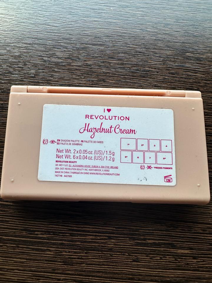 Палетка Revolution ореховые оттенки. Подойдут для разного цвета глаз, нюдовые ходовые, 4 мерцающих цвета, 4 матовые. Артикул: 524720