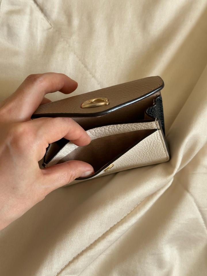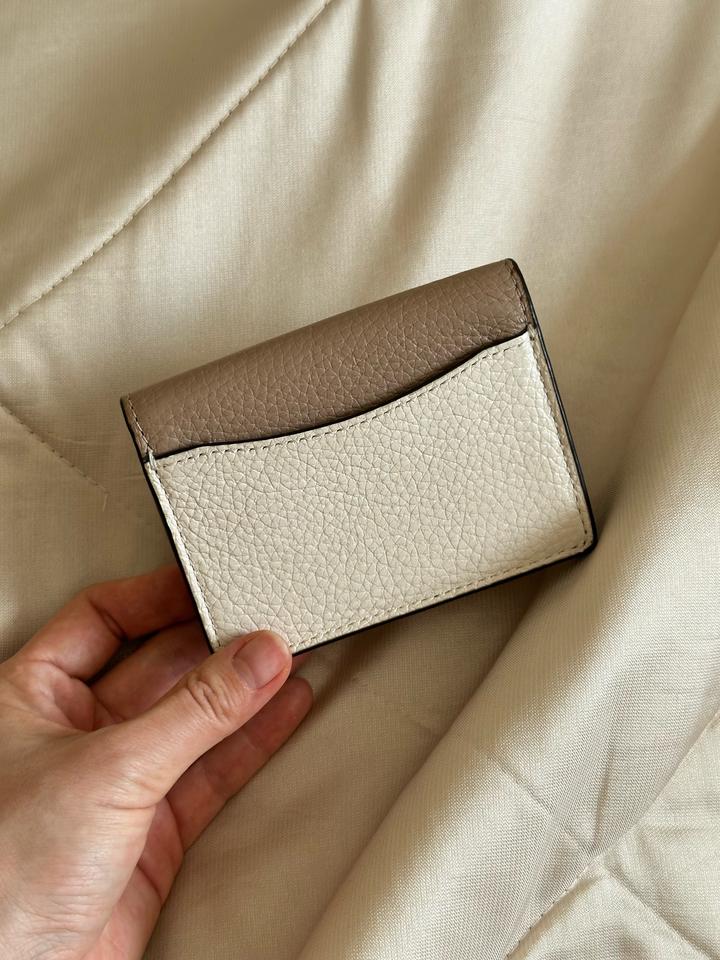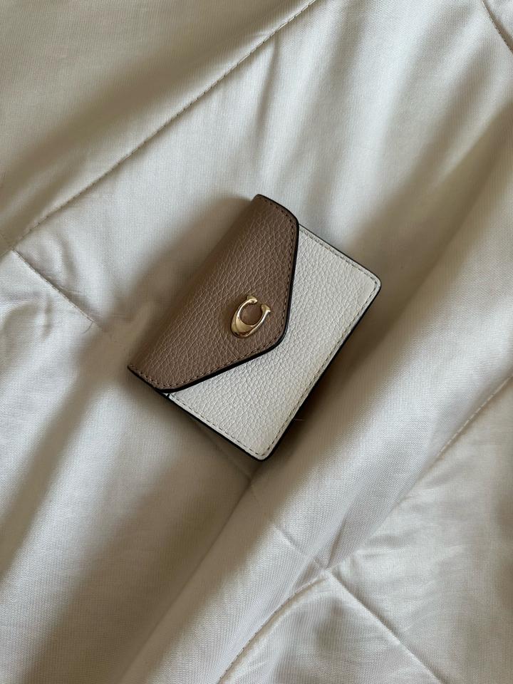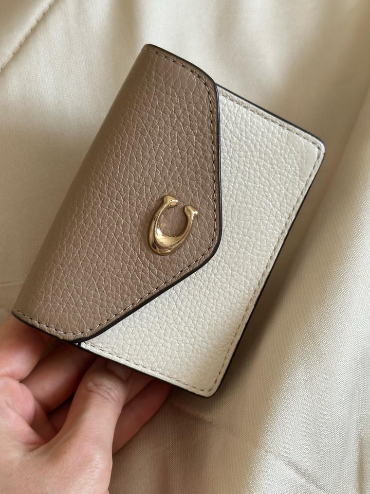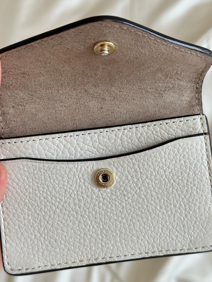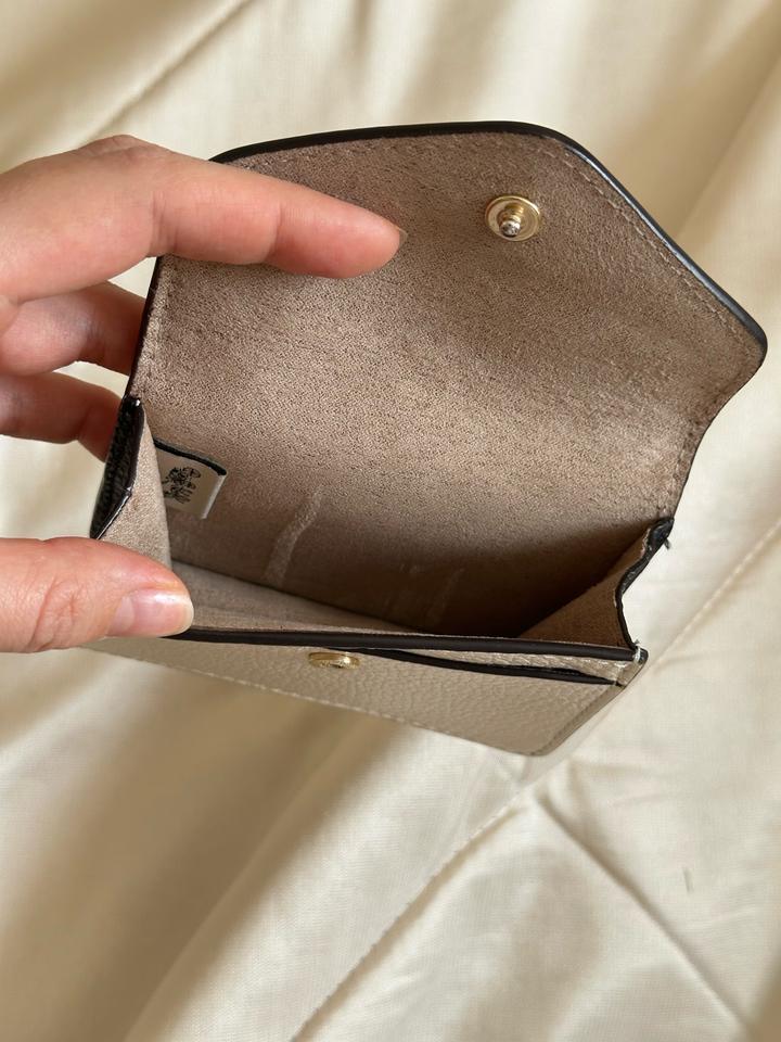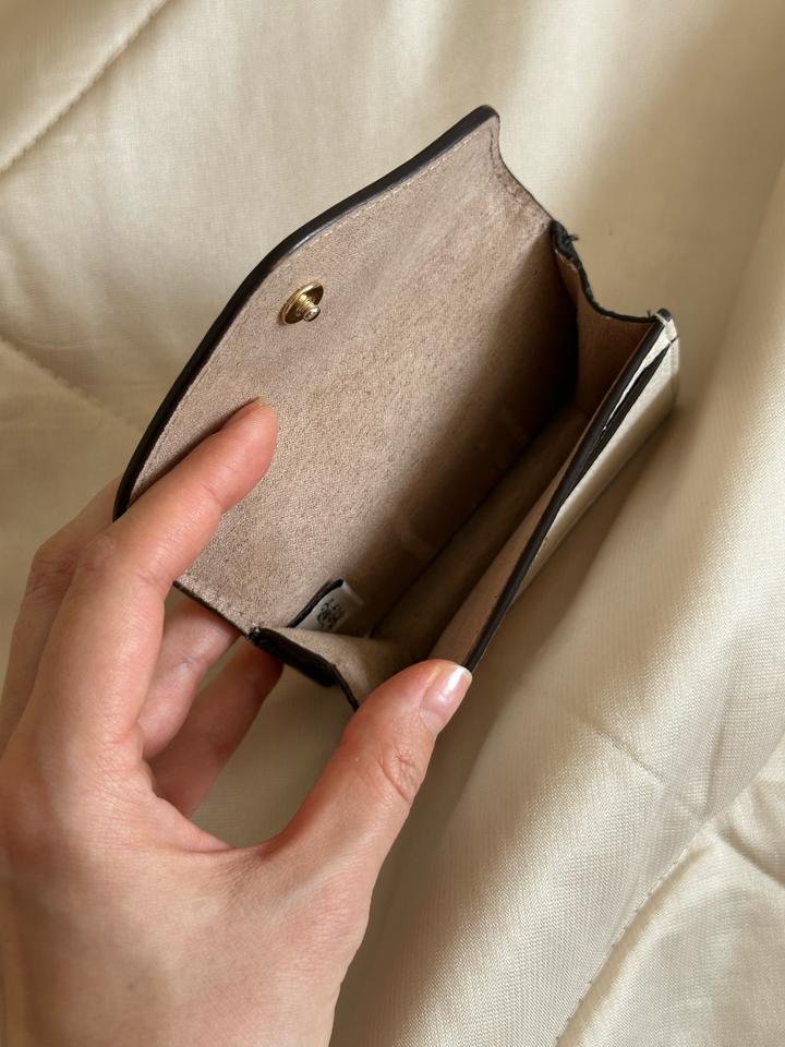 Бежево-молочный кожаный кошелек Coach в идеальном состоянии. Есть незаметная потертость на металлической букве C. Идеальна для хранения карточек и визиток. Артикул: 524822