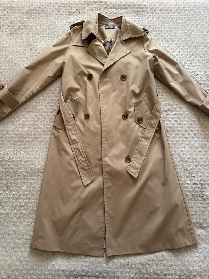 Базовый бежевый тренч, размер 42-44 (на этикетке 44). Подойдет стройным девушкам. Состояние идеальное. Надевался несколько раз. Производство Кыргызстан. На весну прекрасный вариант. Артикул: 524860