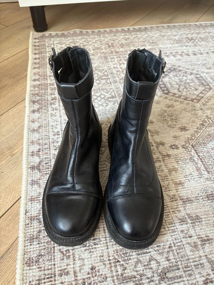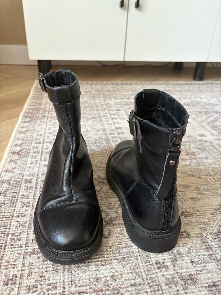 Черные кожаные демисезонные ботинки. С толстой подошвой. В хорошем состоянии. Внутри утепленные. Очень легкие. Артикул: 524940